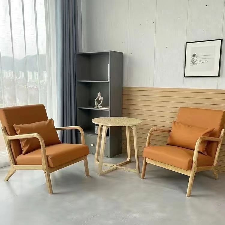 현대적인 심플한 북유럽 패브릭 캐주얼 탈부착 및 세탁 가능한 1인용 소파 작은 아파트 거실 발코니 단단한 나무 테이블과 의자 조합