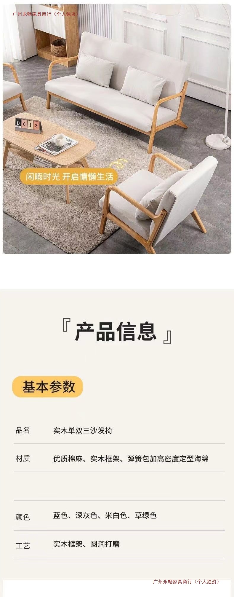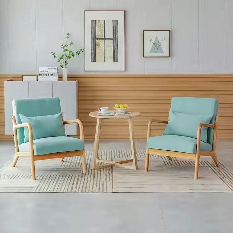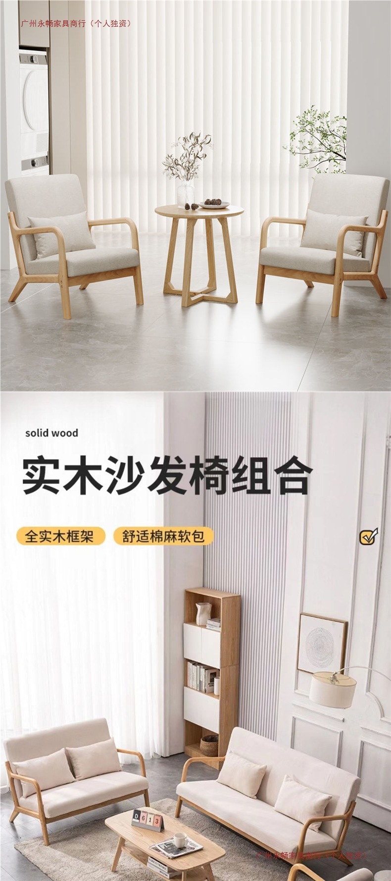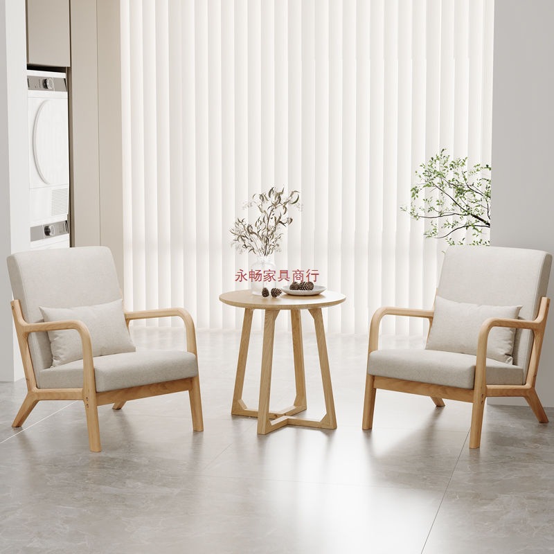 현대적인 심플한 북유럽 패브릭 캐주얼 탈부착 및 세탁 가능한 1인용 소파 작은 아파트 거실 발코니 단단한 나무 테이블과 의자 조합스토어 가기