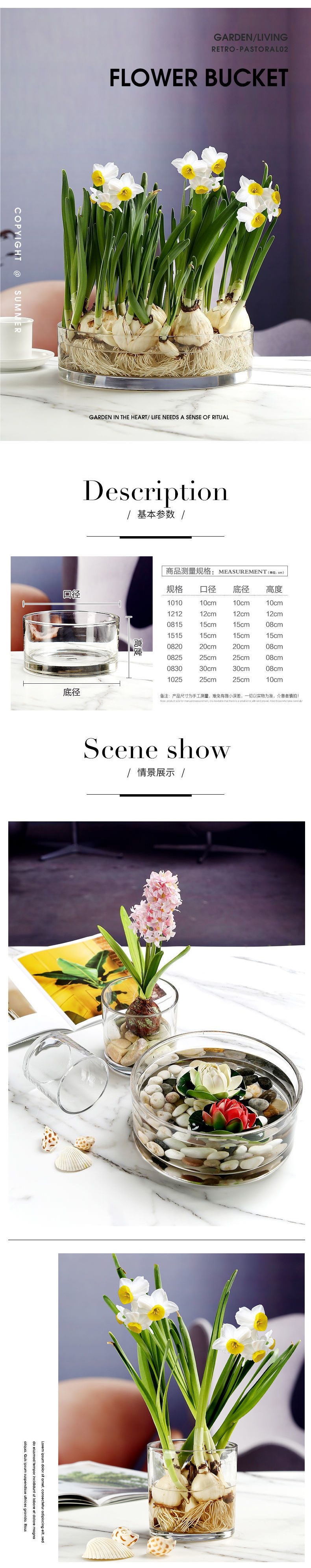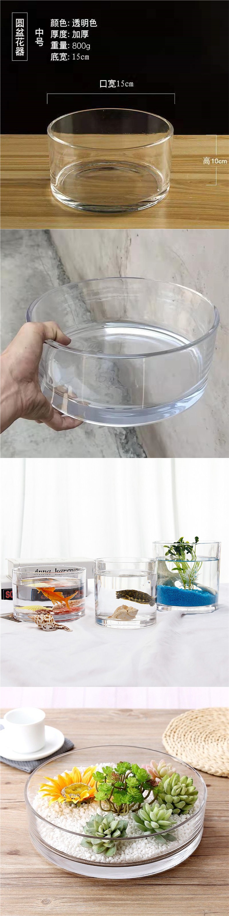 두꺼운 튤립 원형 유리 화분, 수경 연꽃, 수련, 구리 화분, 낮은 유리 항아리, 유리 그릇스토어 가기