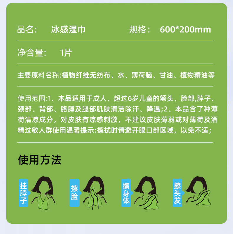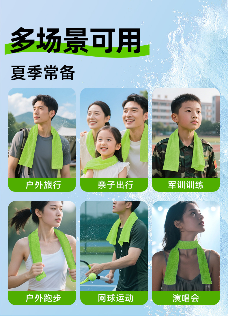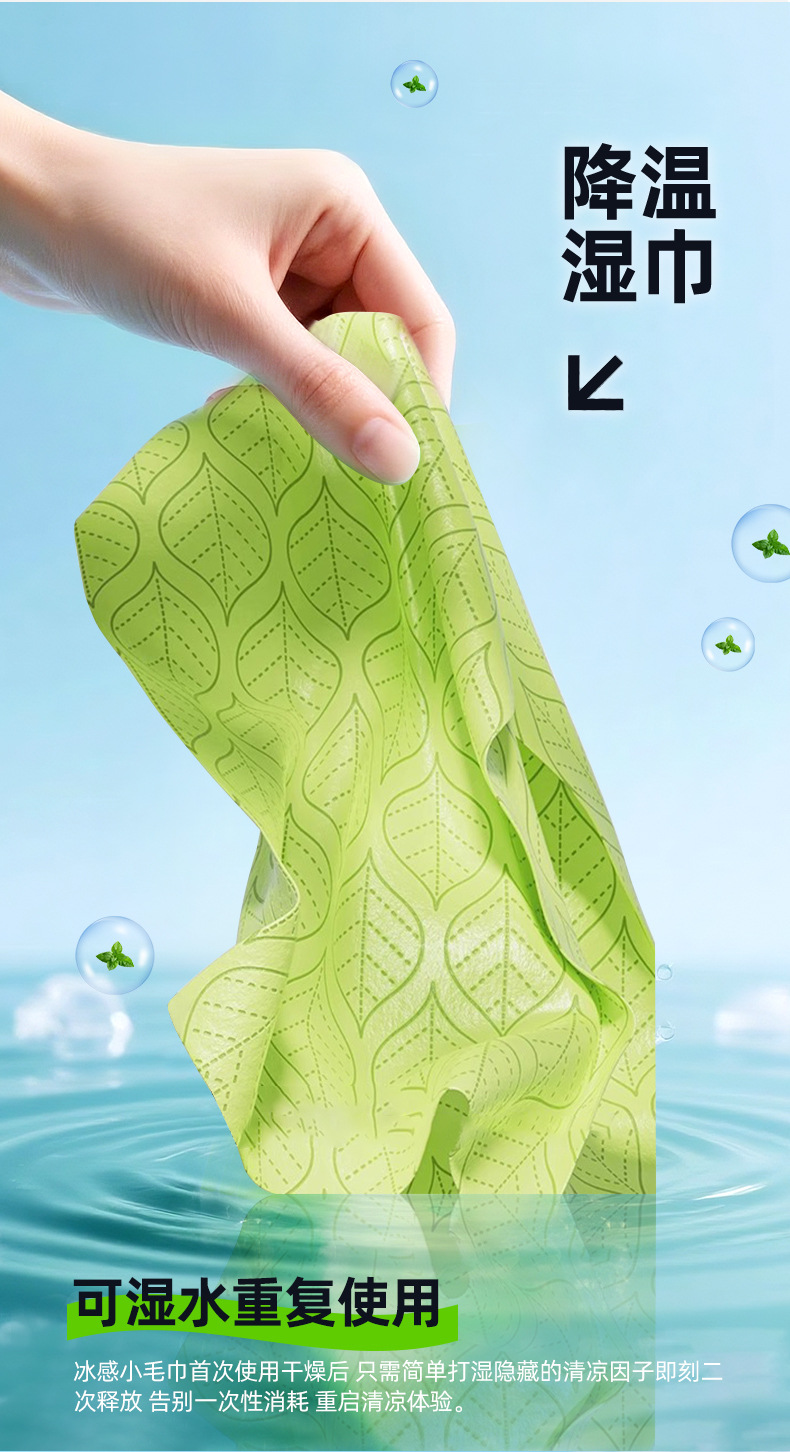 학생 군사 훈련을 위한 상쾌하고 시원한 얼음 느낌의 냉각 물티슈, 땀 닦기, 냉각 및 열사병 예방 일회용 냉각 수건