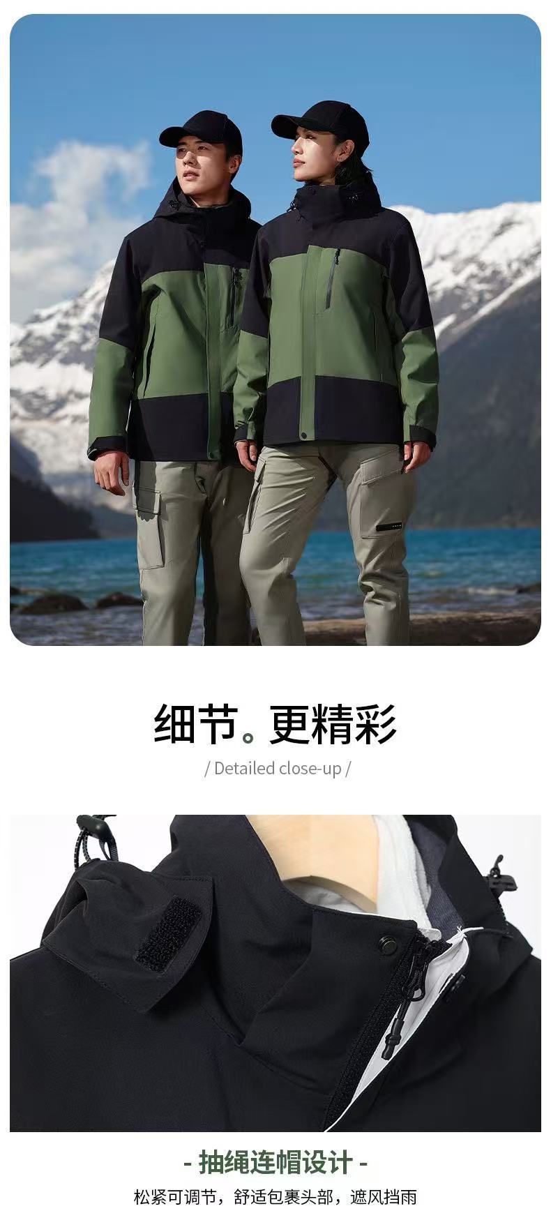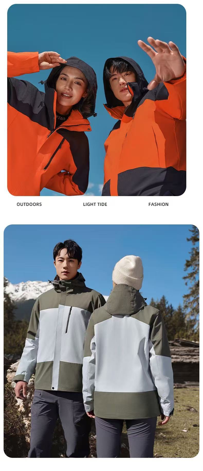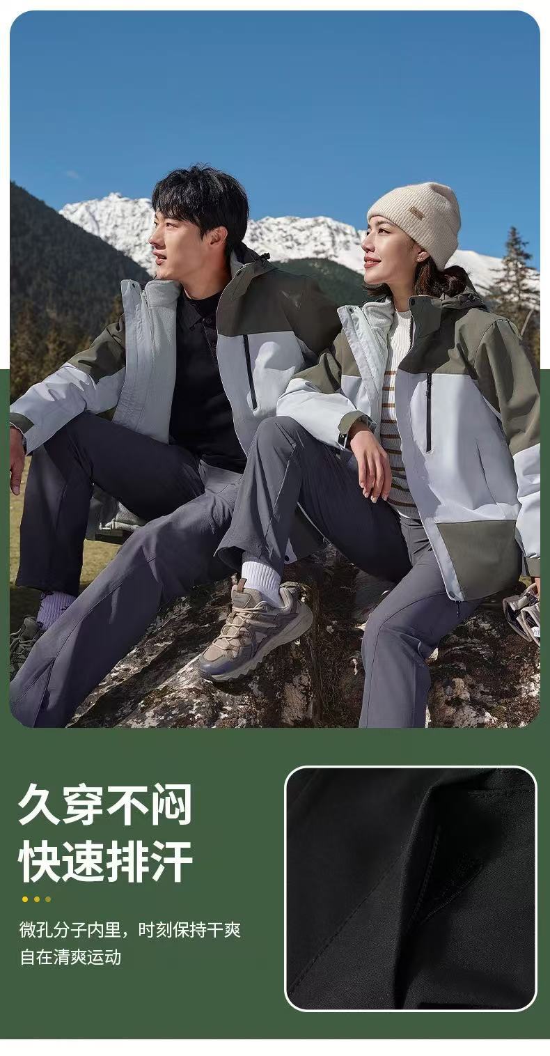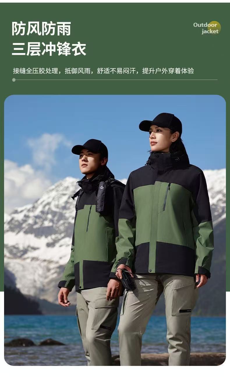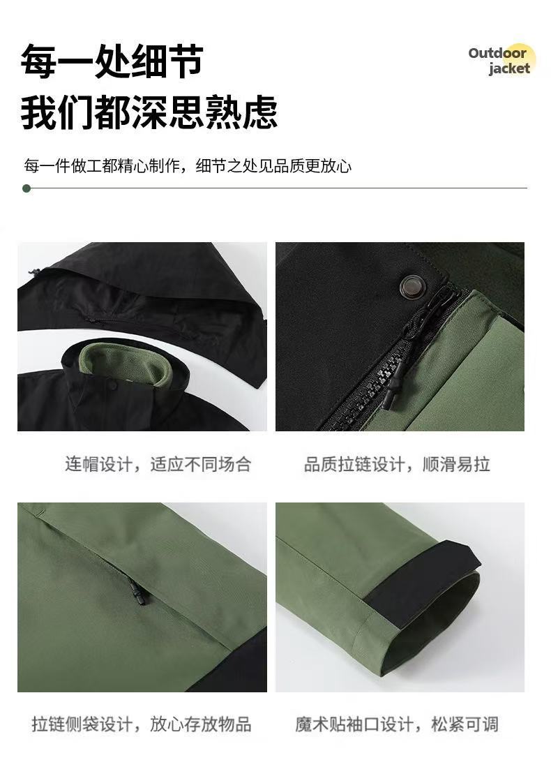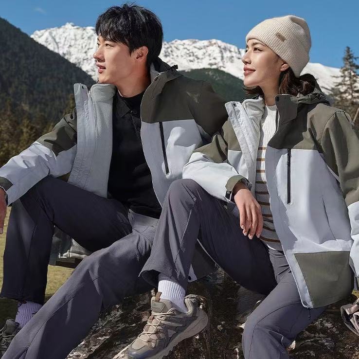 3-in-1 재킷, 오리지널 벨벳 워크 재킷, 프린트 로고, 가을 겨울 방풍 및 방수 야외 재킷 작업복