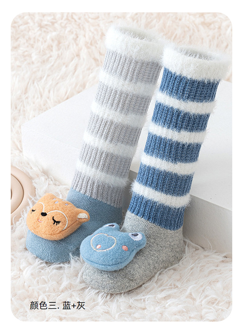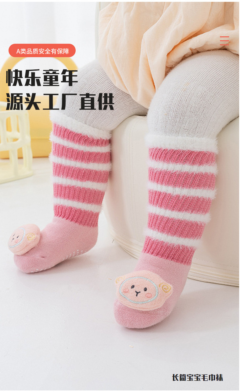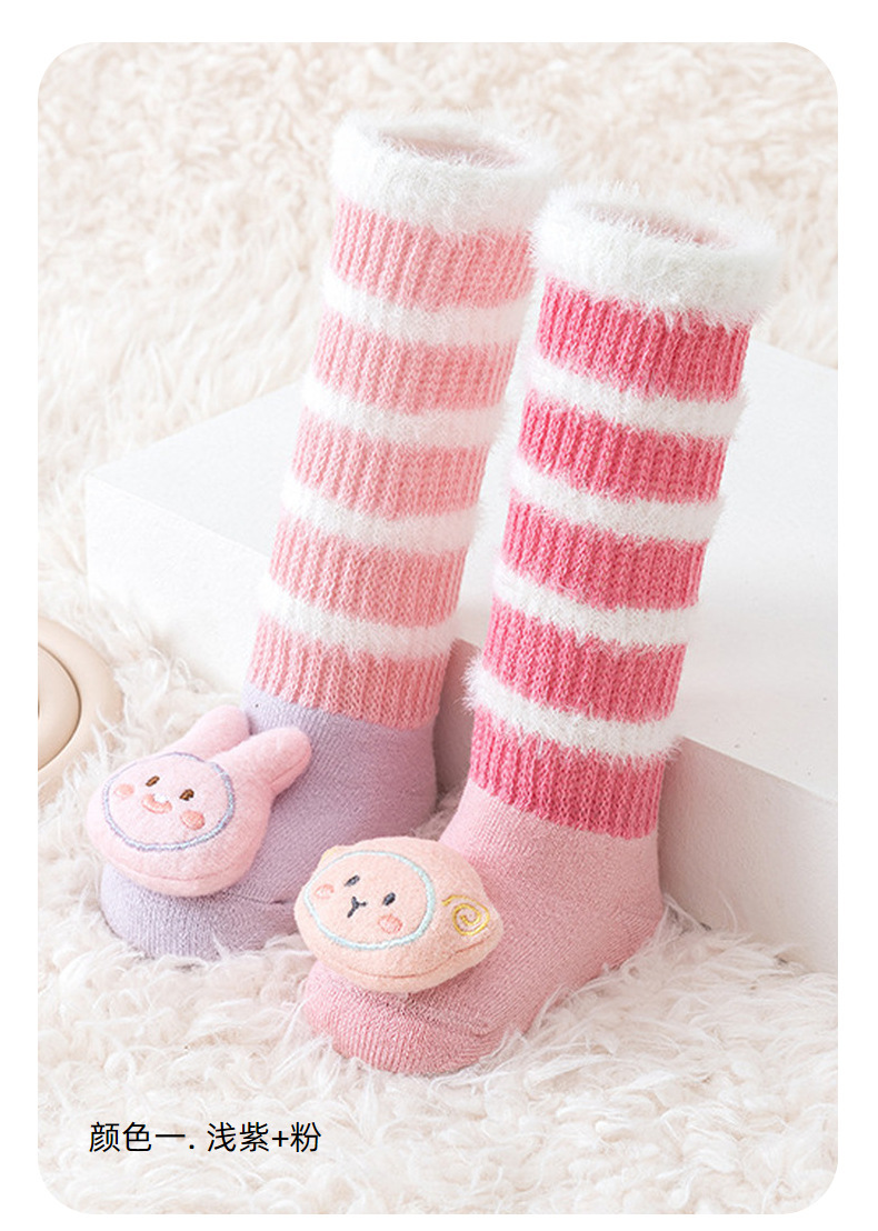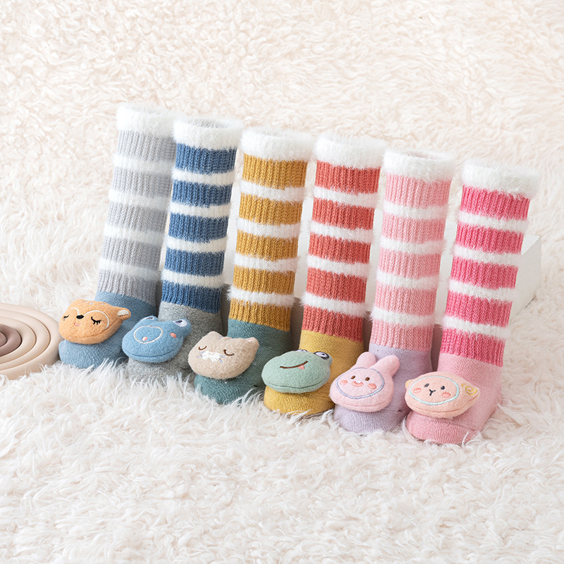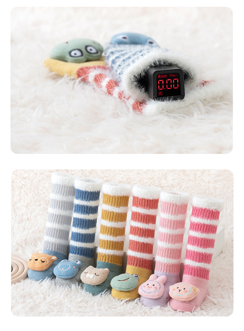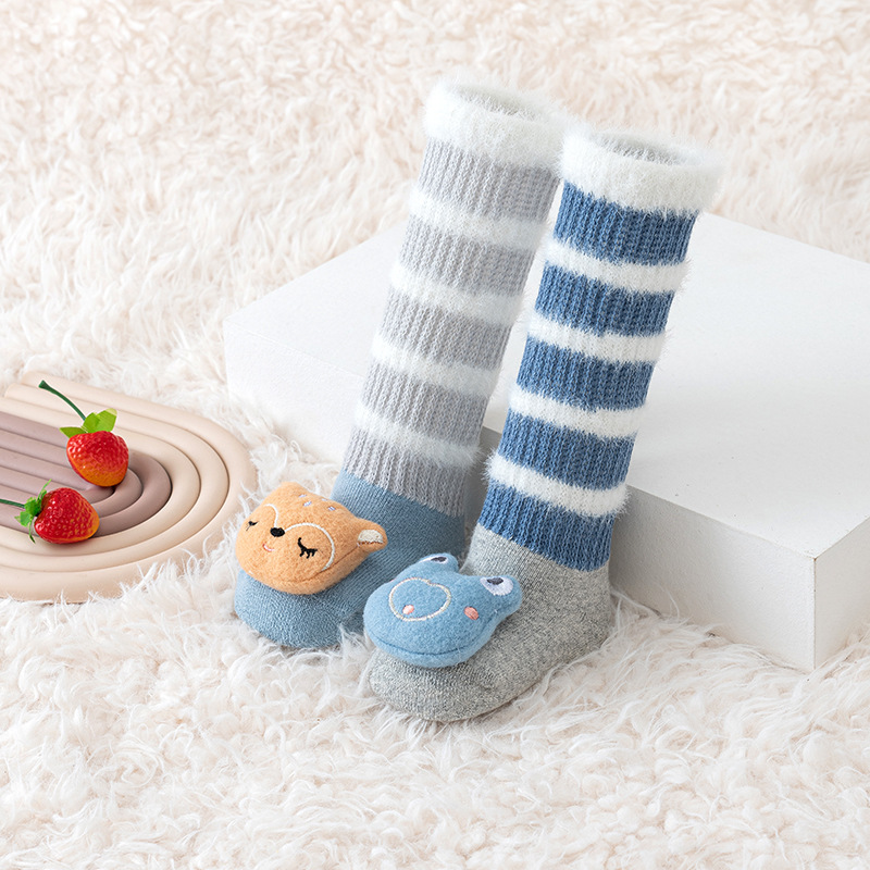 가을 겨울 신생아 양말, 부드럽고 신축성이 없는 종아리 양말, 귀여운 집에서 인형 양말, 0~1세 아기가 따뜻하게 유지