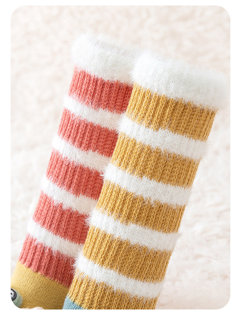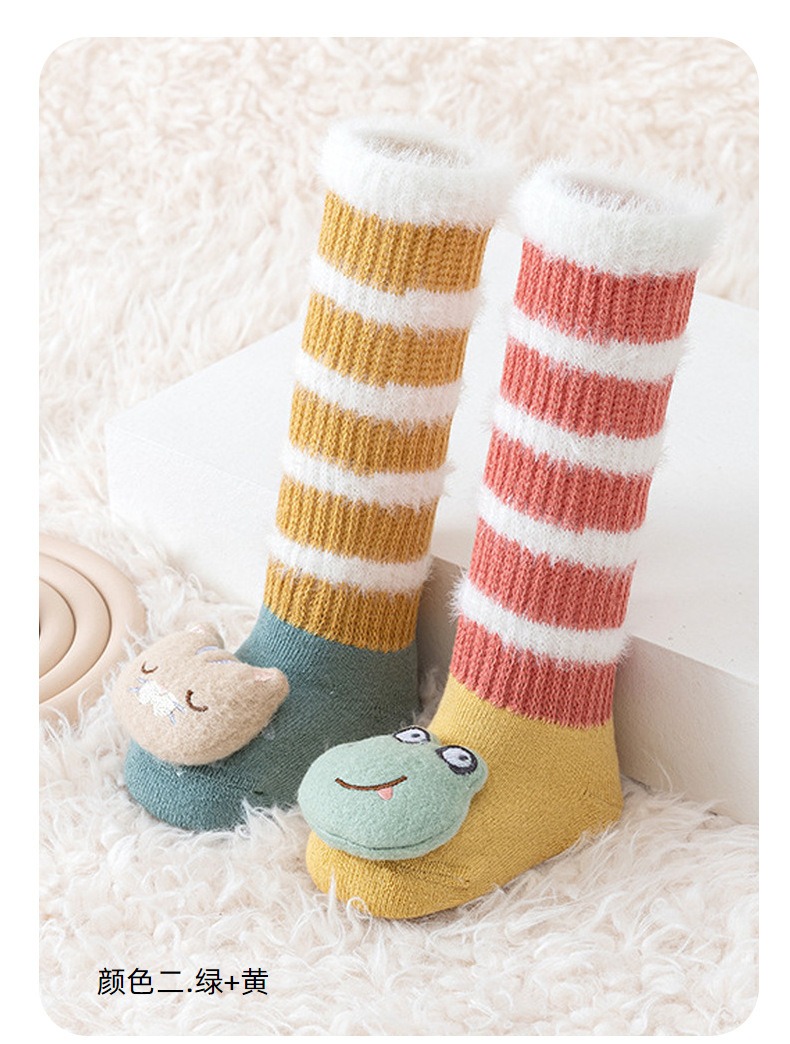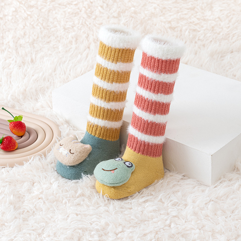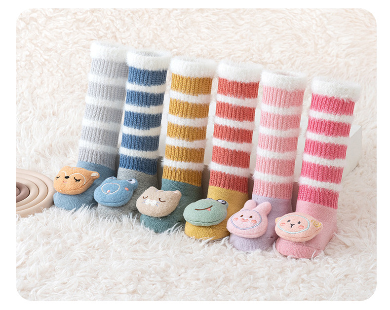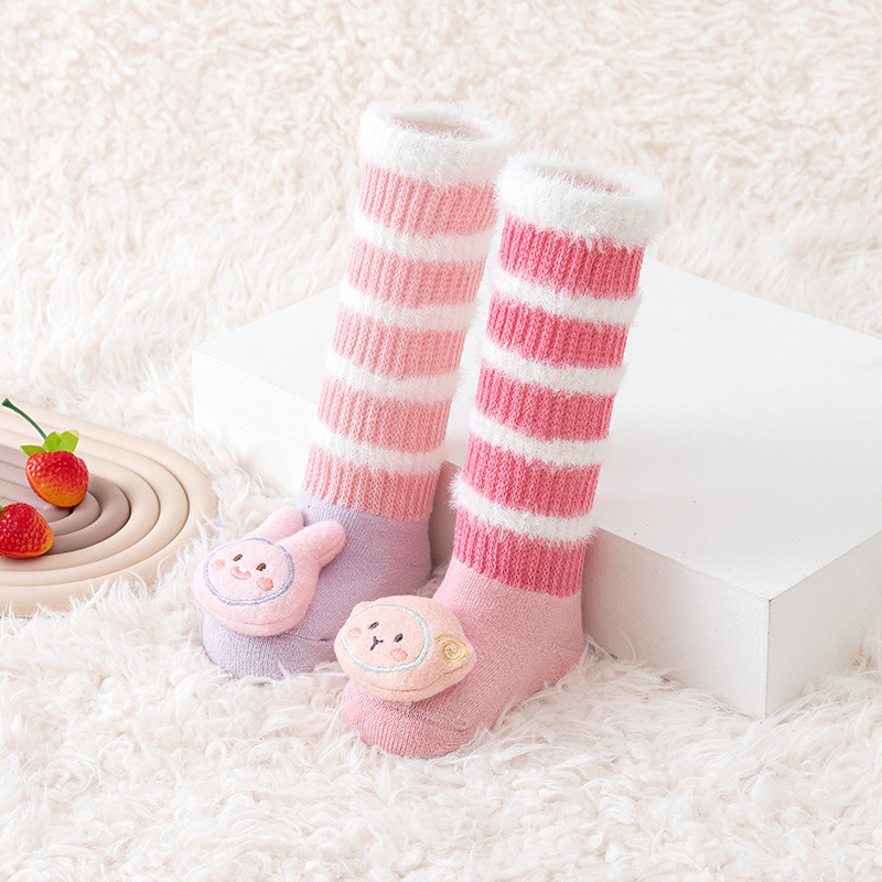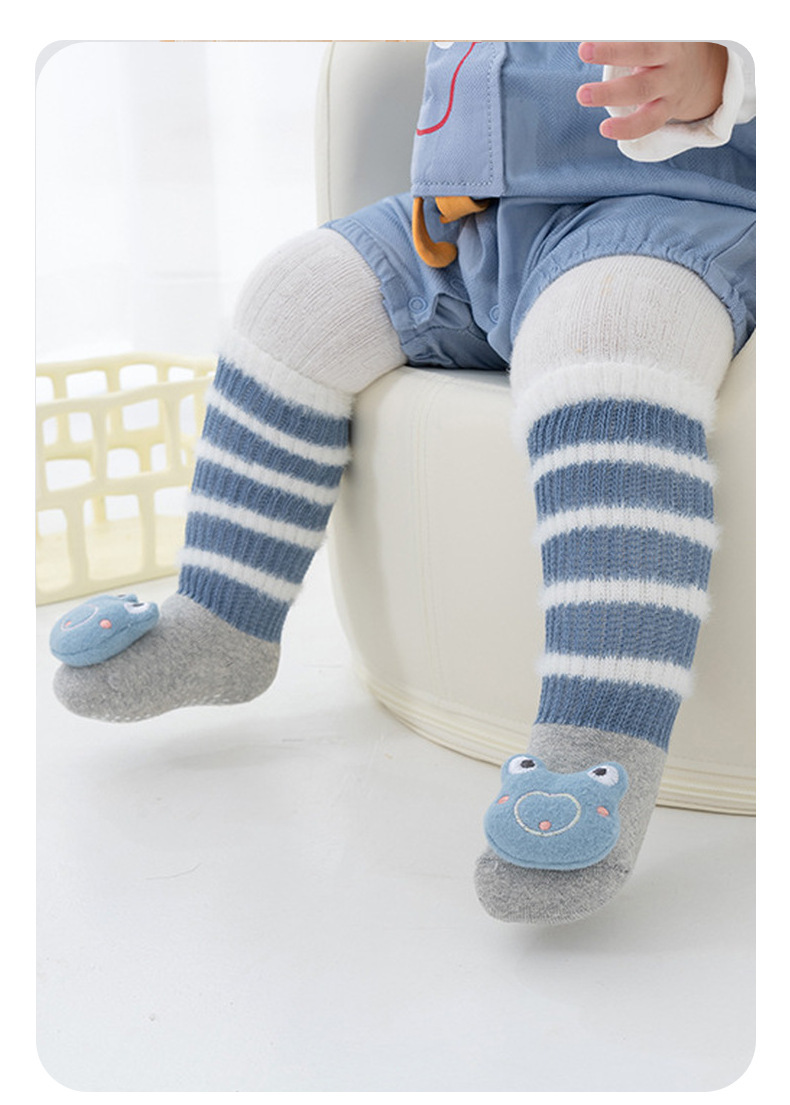 가을 겨울 신생아 양말, 부드럽고 신축성이 없는 종아리 양말, 귀여운 집에서 인형 양말, 0~1세 아기가 따뜻하게 유지