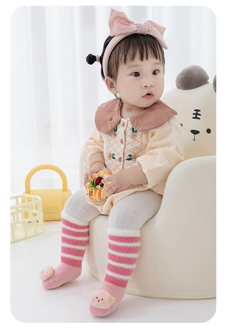 가을 겨울 신생아 양말, 부드럽고 신축성이 없는 종아리 양말, 귀여운 집에서 인형 양말, 0~1세 아기가 따뜻하게 유지스토어 가기