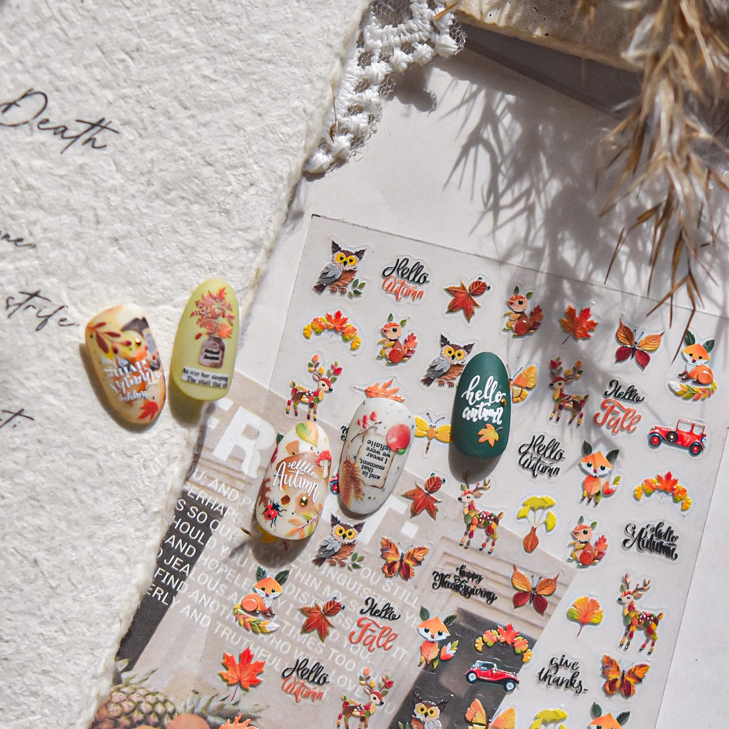tomoni 양각 네일 아트 스티커 인기 diy 가을 복고풍 네일 스티커 붉은 단풍잎 스티커 네일 아트 믹스 스타일
