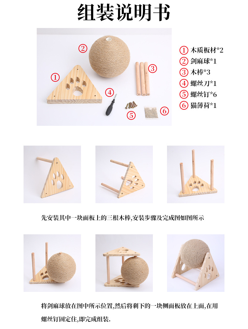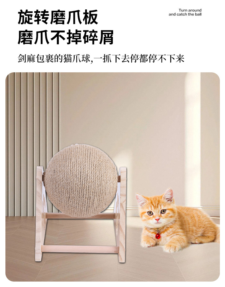 자네마 원목 다기능 고양이 스크래치 보드, 원형 고양이 클라이밍 프레임, 내마모성, 부스러기 없는 회전판 고양이 장난감