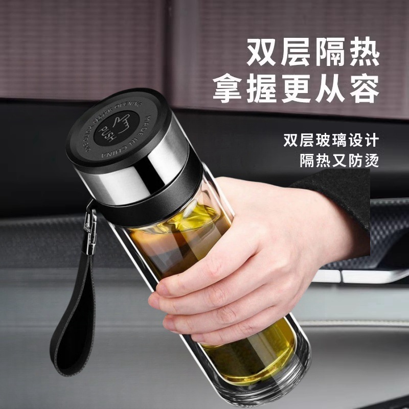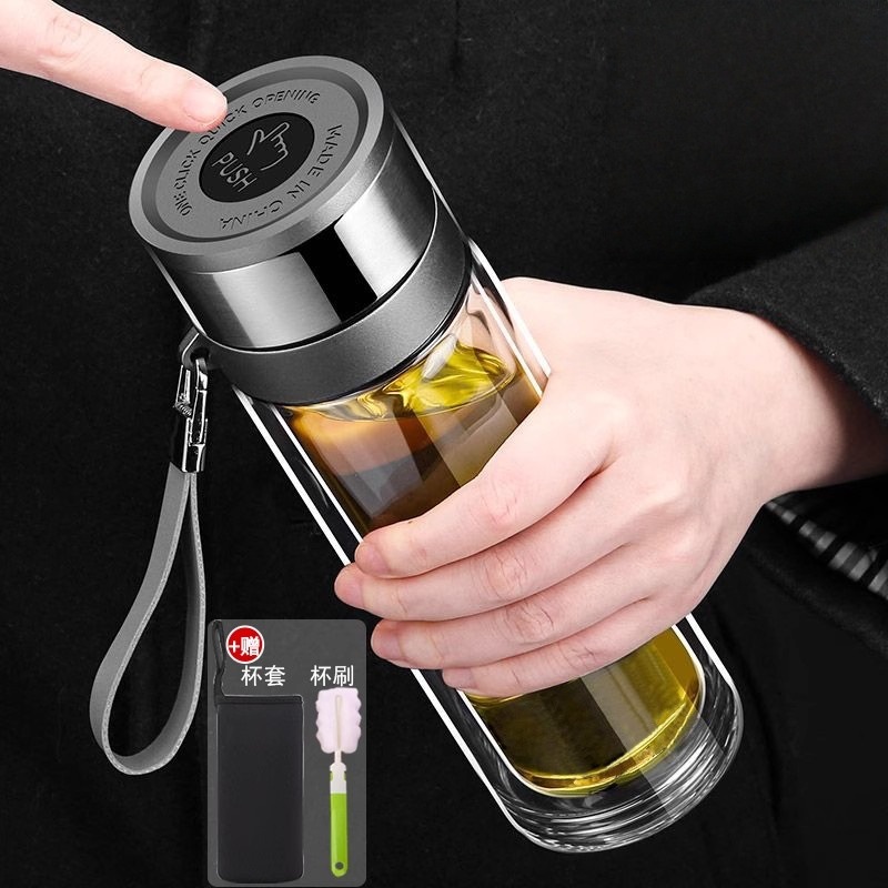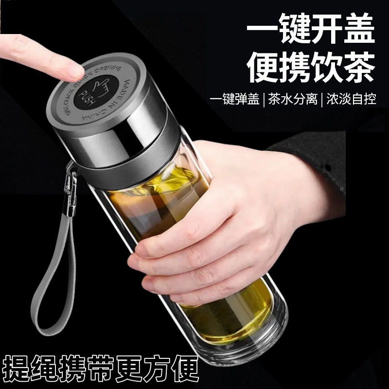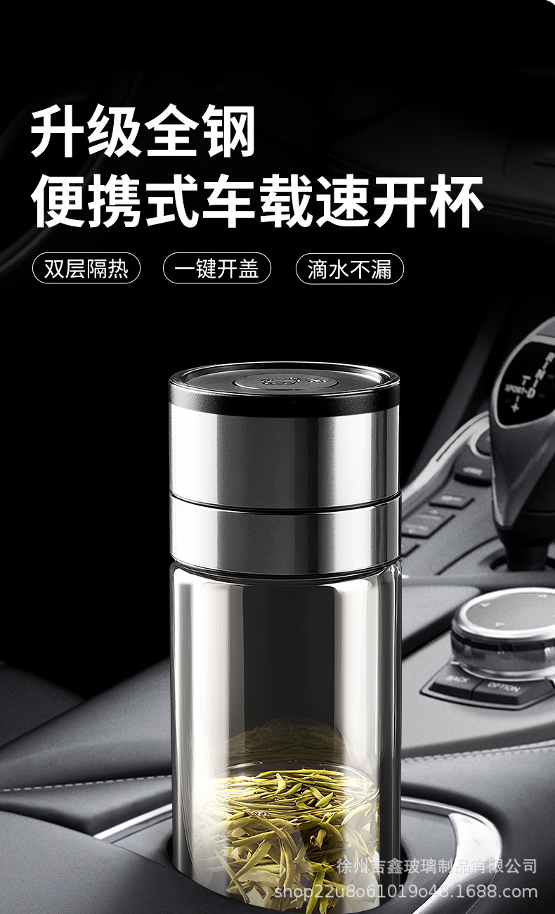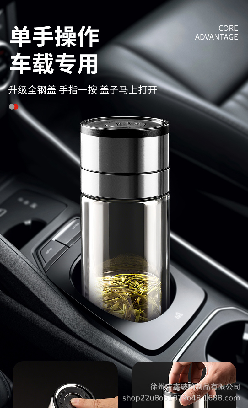 새로운 원터치 뚜껑 개폐형 고붕규산 내열 이중 유리컵, 가정용 음료컵, 남녀공용 차와 물 분리형 차량용 컵
