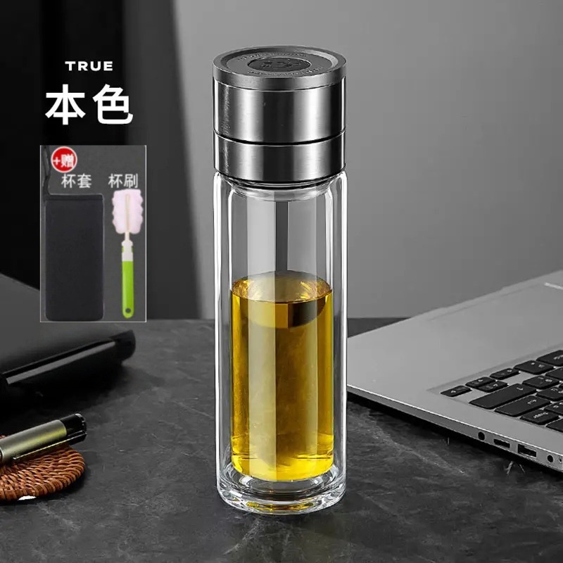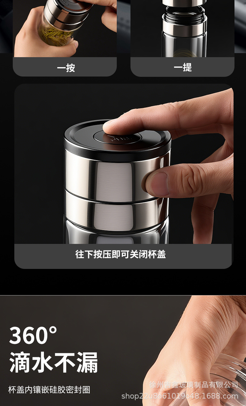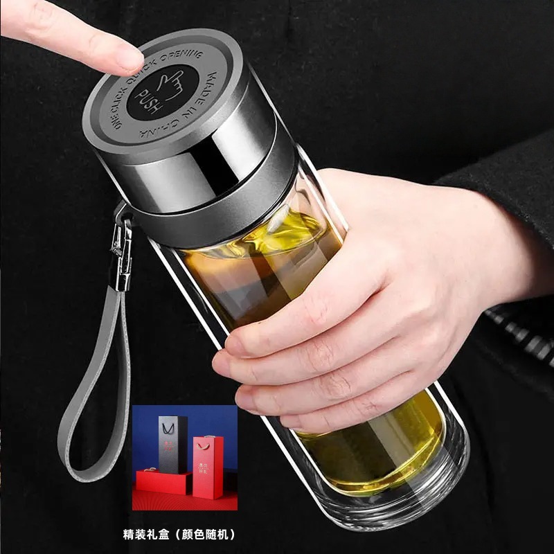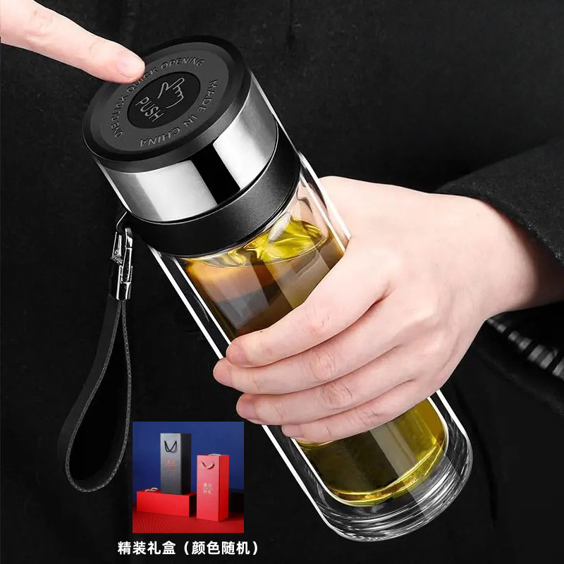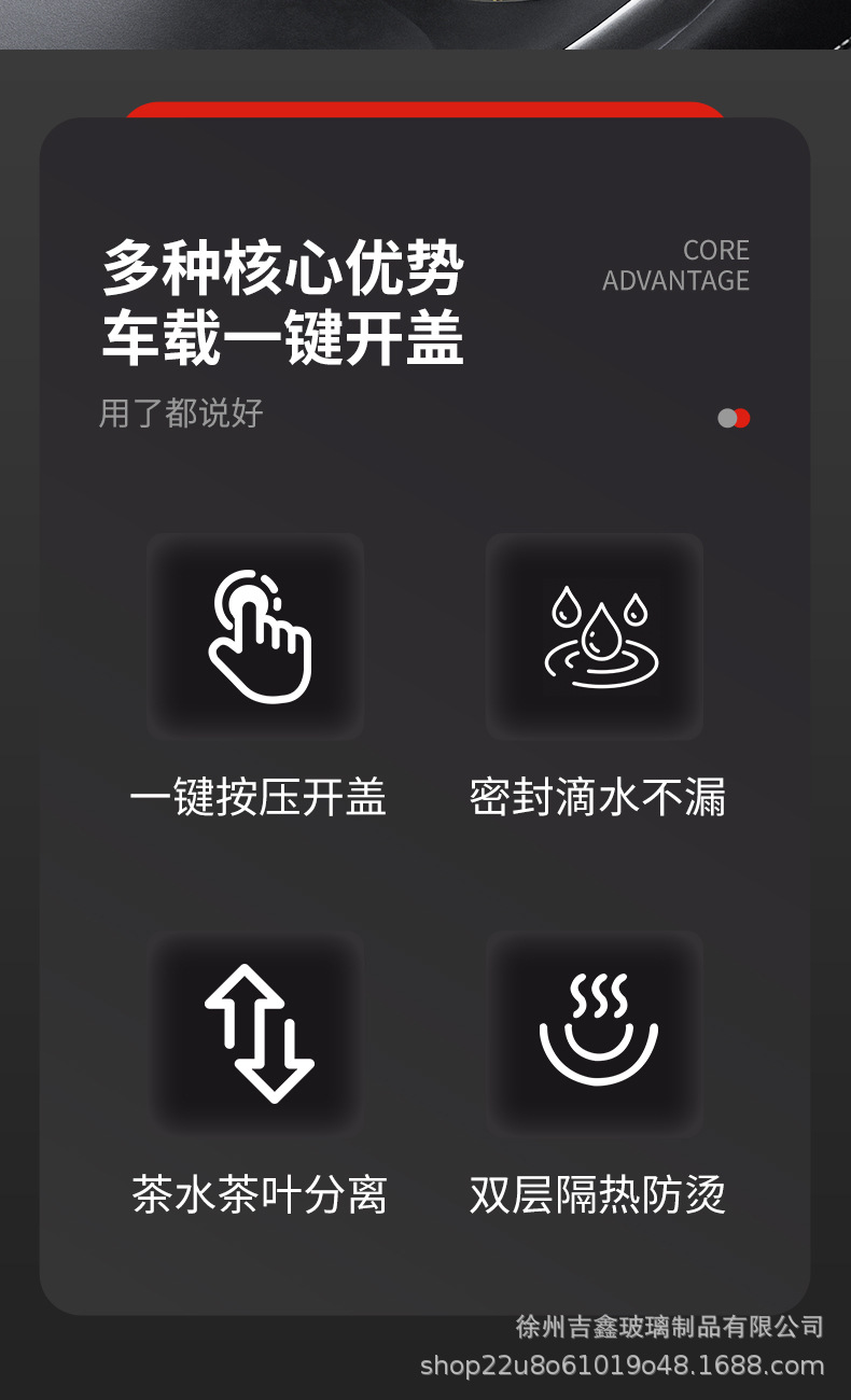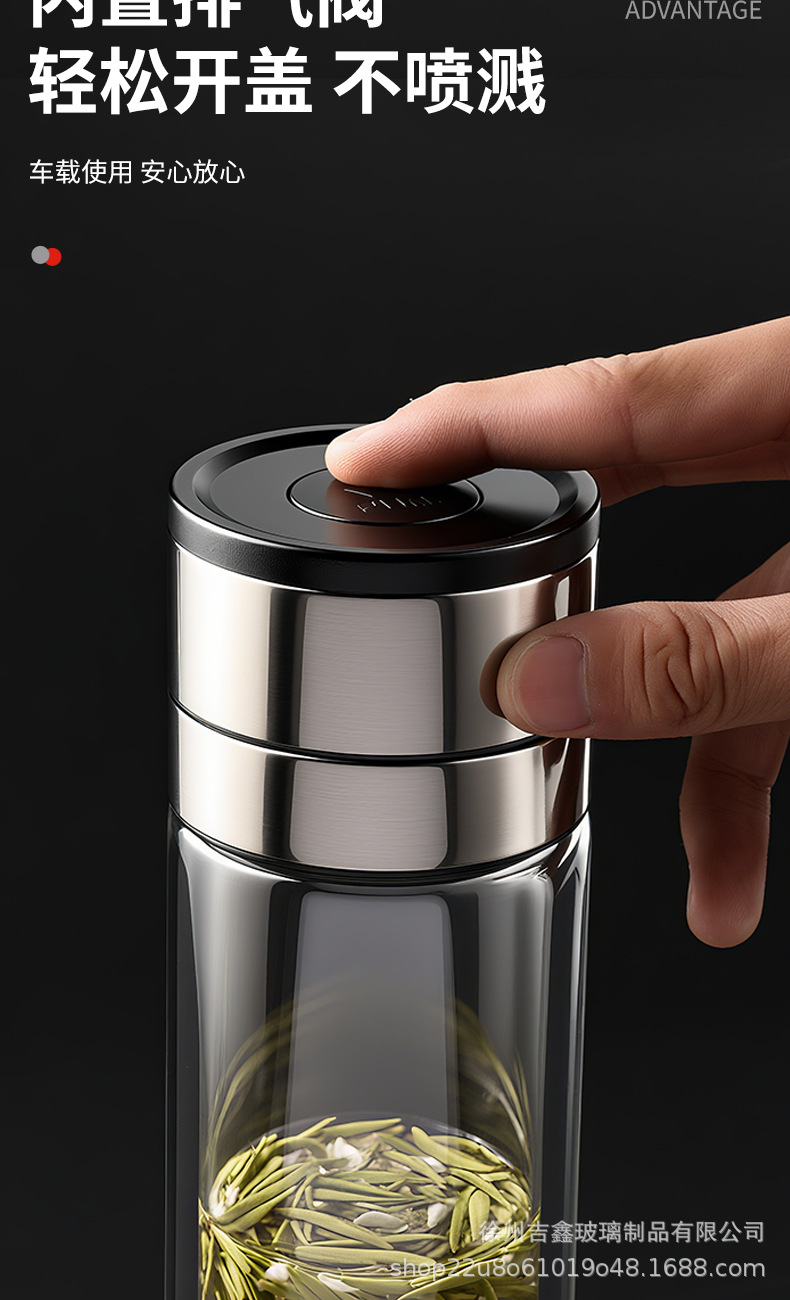 새로운 원터치 뚜껑 개폐형 고붕규산 내열 이중 유리컵, 가정용 음료컵, 남녀공용 차와 물 분리형 차량용 컵