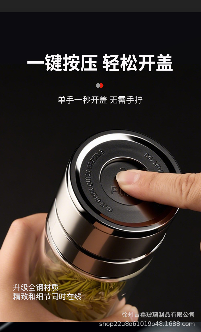 새로운 원터치 뚜껑 개폐형 고붕규산 내열 이중 유리컵, 가정용 음료컵, 남녀공용 차와 물 분리형 차량용 컵스토어 가기