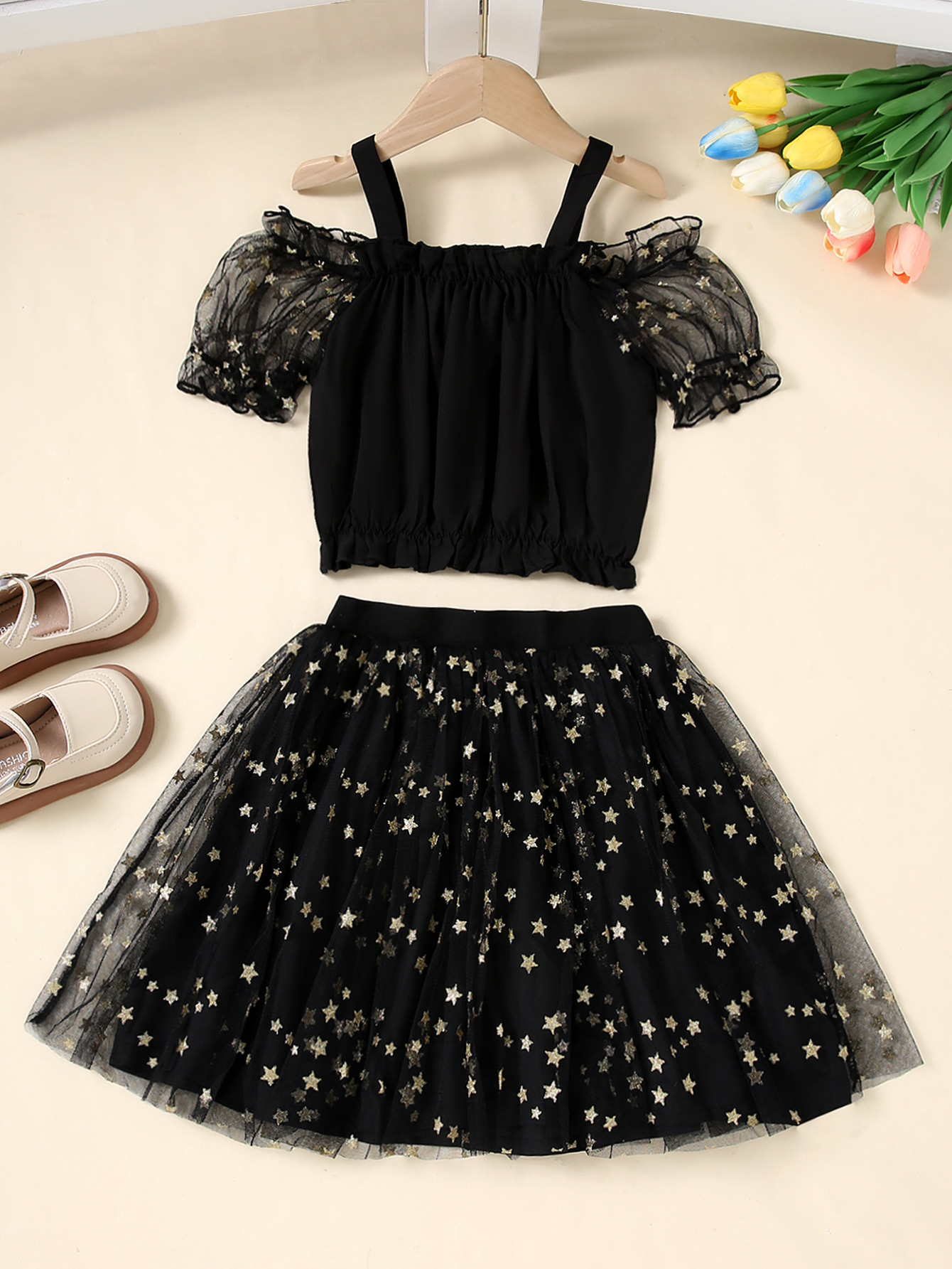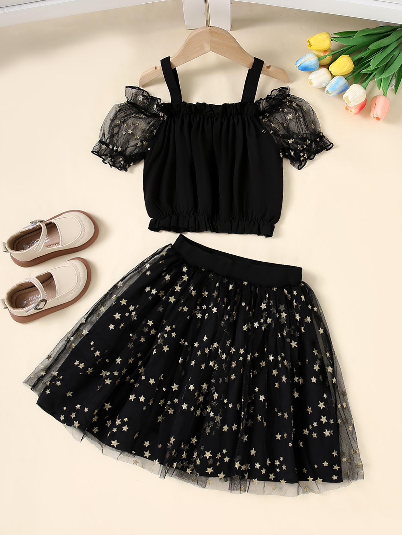 여아 스커트, 신상 아동 여름옷, 여아 퍼프 스커트, 메쉬 숏 스커트, 패셔너블한 반팔 투피스 세트, 패셔너블스토어 가기