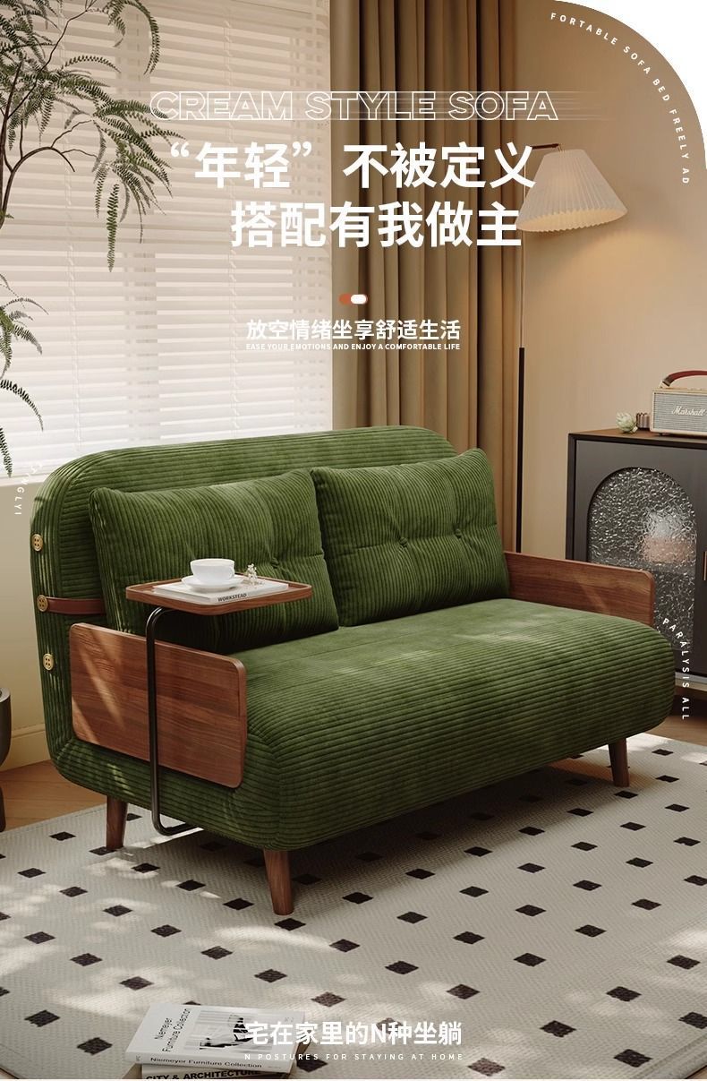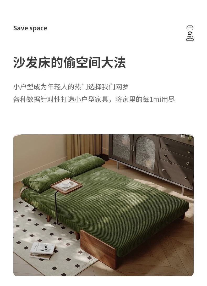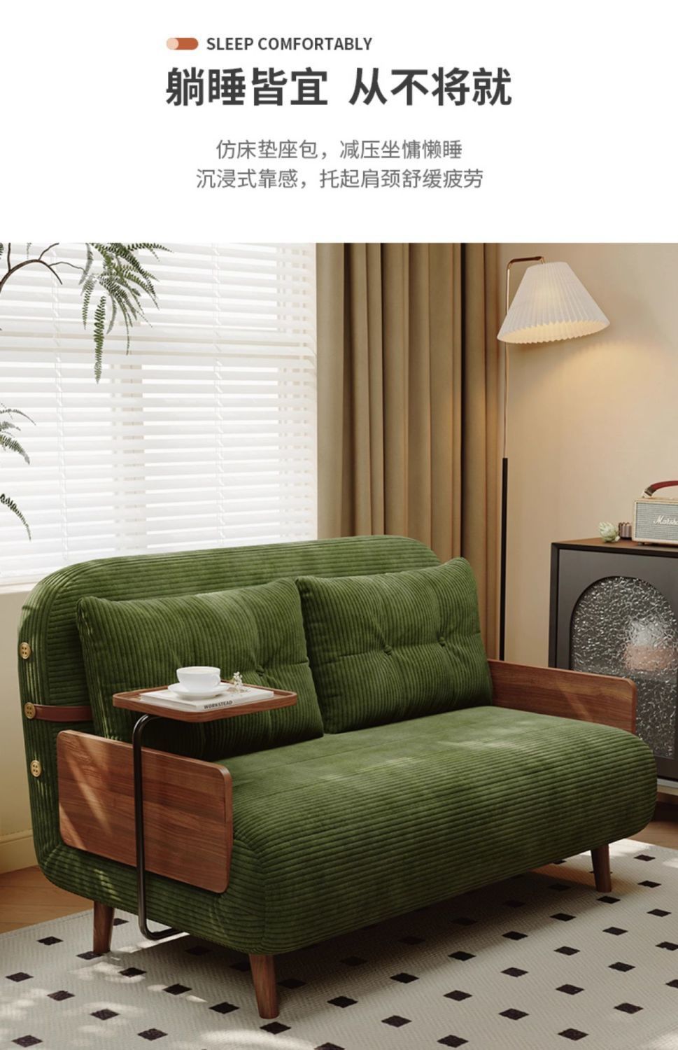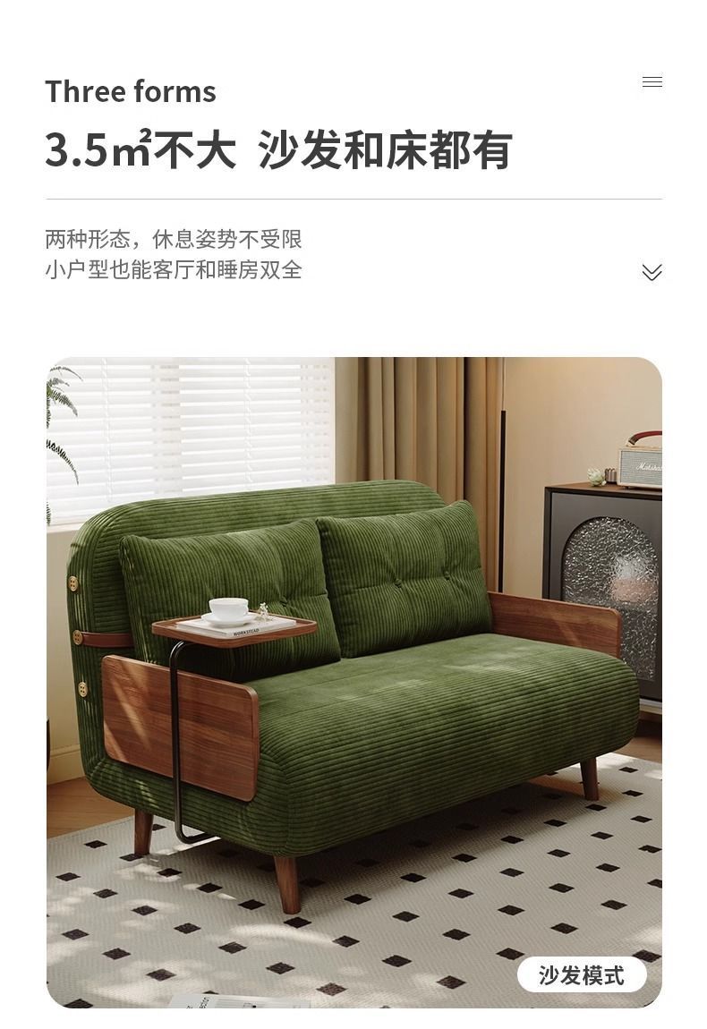 단단한 나무 두꺼운 코듀로이 패브릭 소파 침대 다기능 접이식 확장형 이중 목적 작은 아파트 거실 발코니
