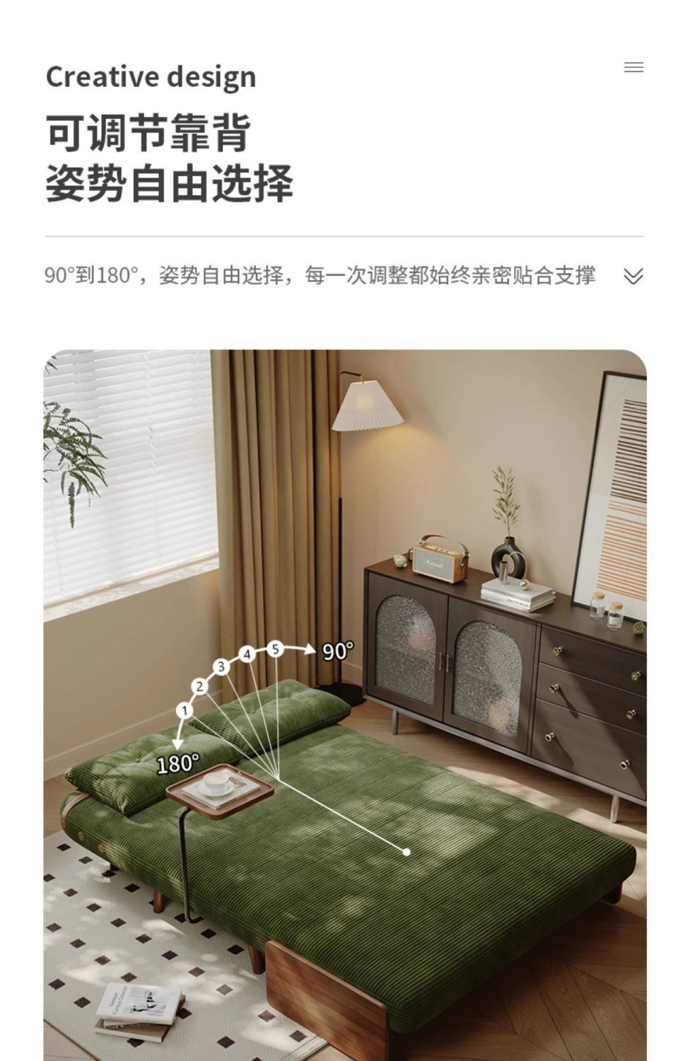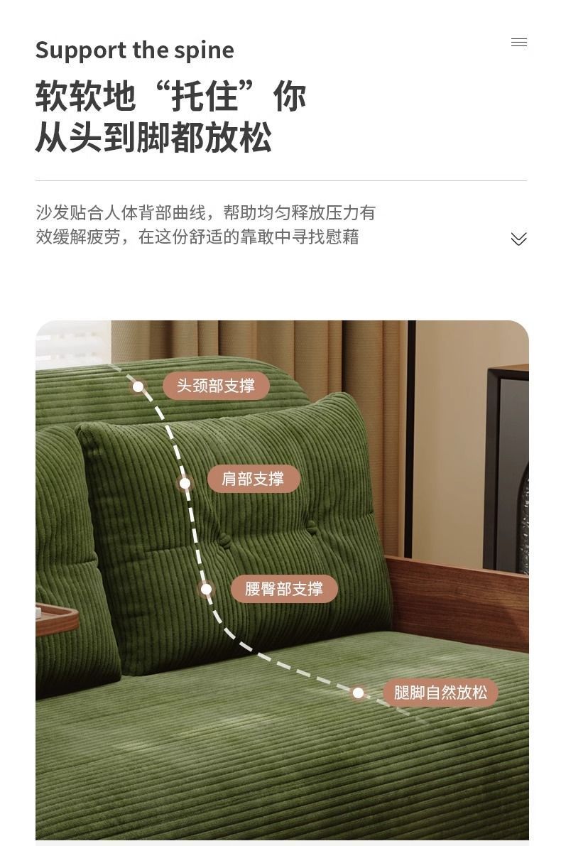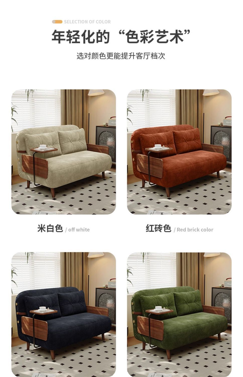 단단한 나무 두꺼운 코듀로이 패브릭 소파 침대 다기능 접이식 확장형 이중 목적 작은 아파트 거실 발코니