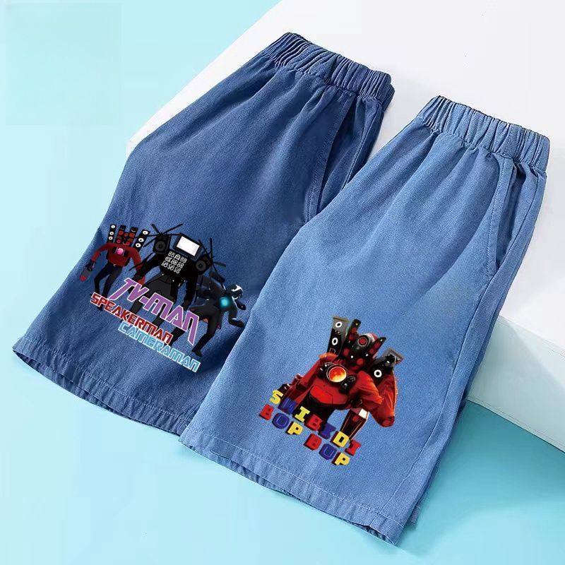 Ultimate Titan Monitor 소년 반바지 여름 얇은 탄성 아기 스포츠 바지 중소형 어린이를위한 모조 청바지 12스토어 가기