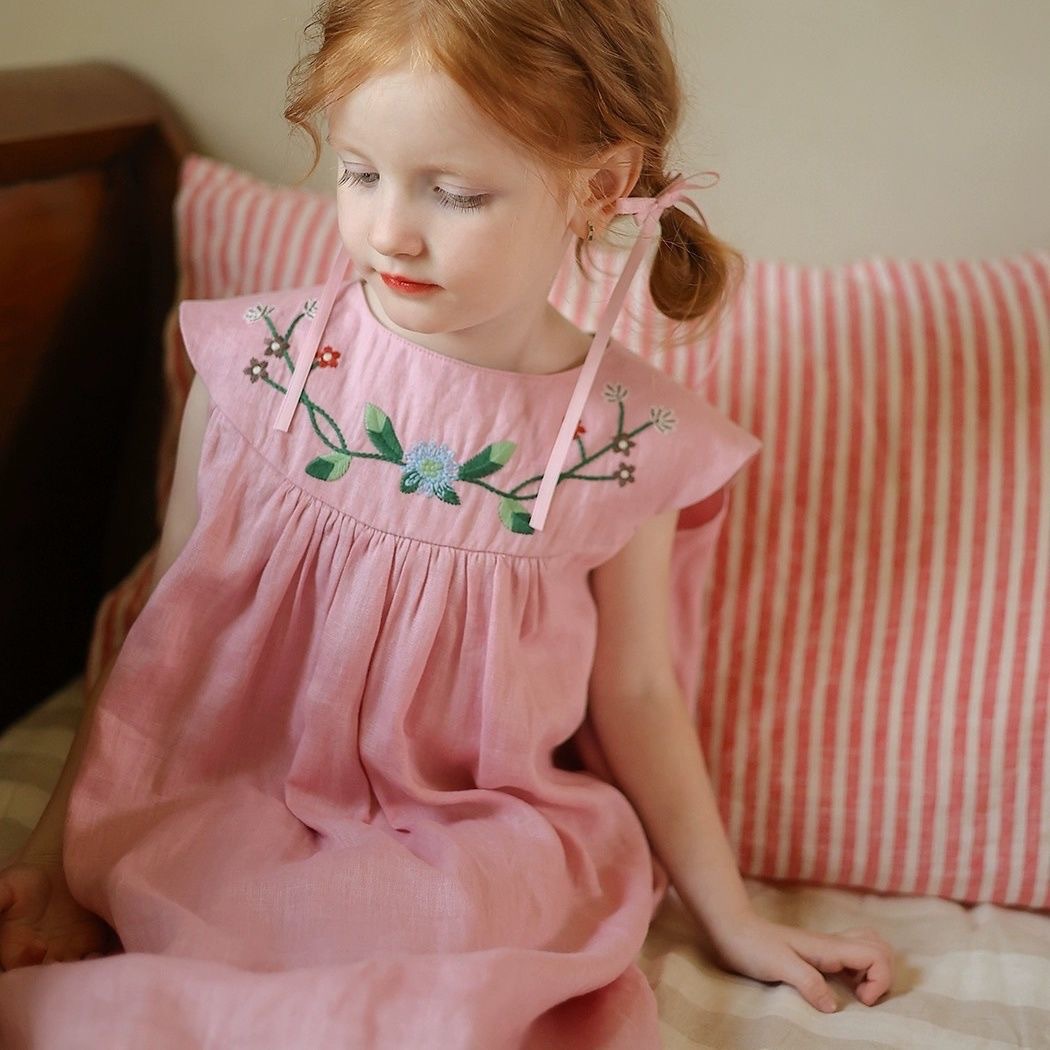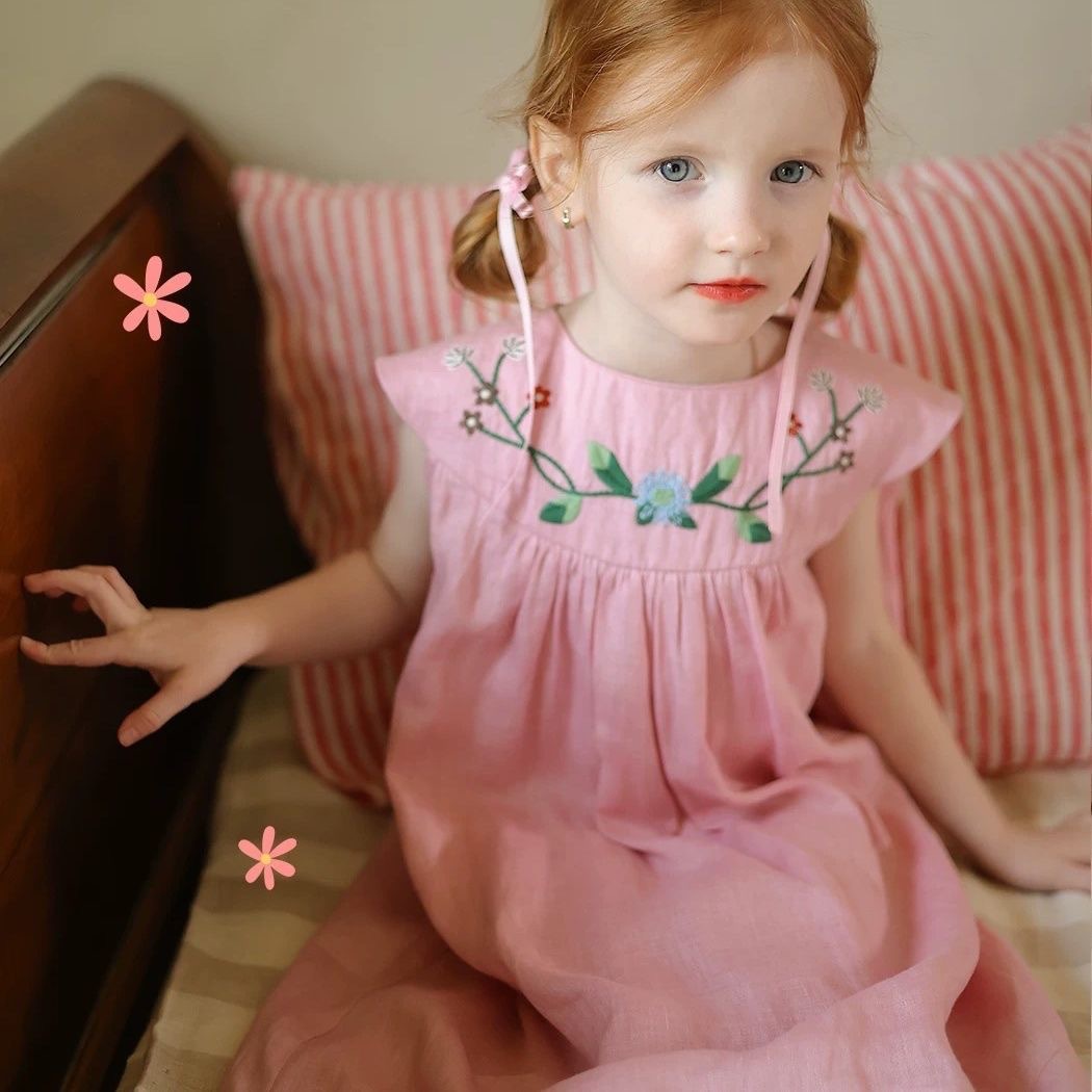 여아 드레스 2026 여름 신상 여아 자수 드레스, 전원풍 꽃무늬 패치워크 레이스 드레스, 트렌디한 스타일스토어 가기
