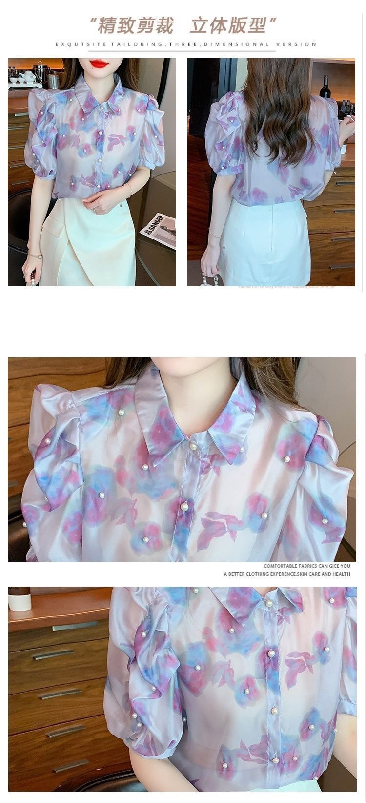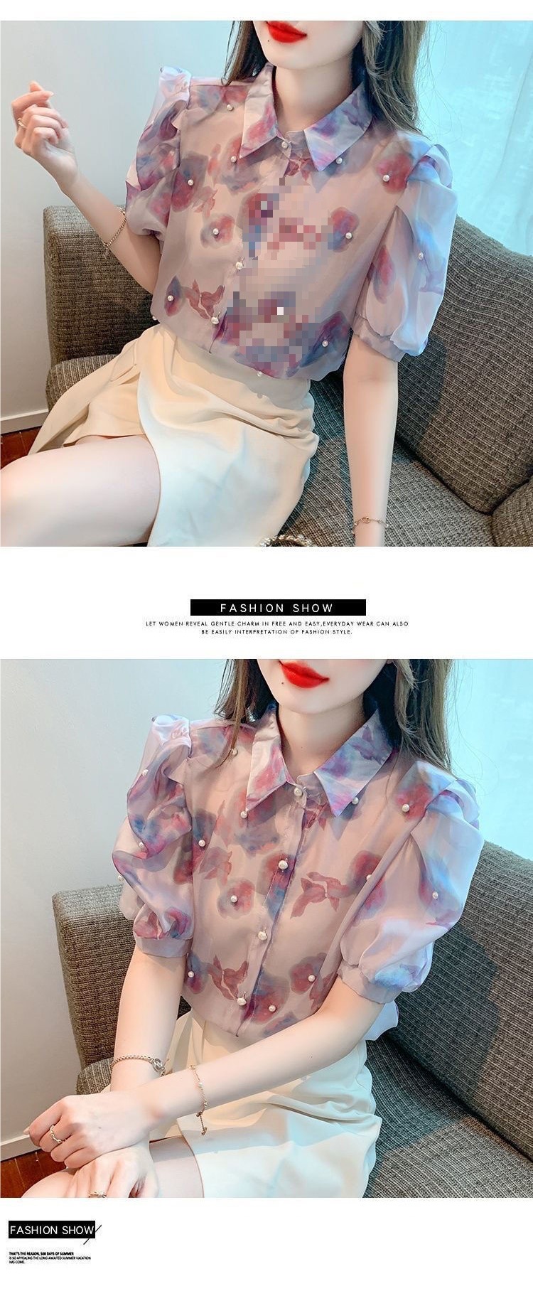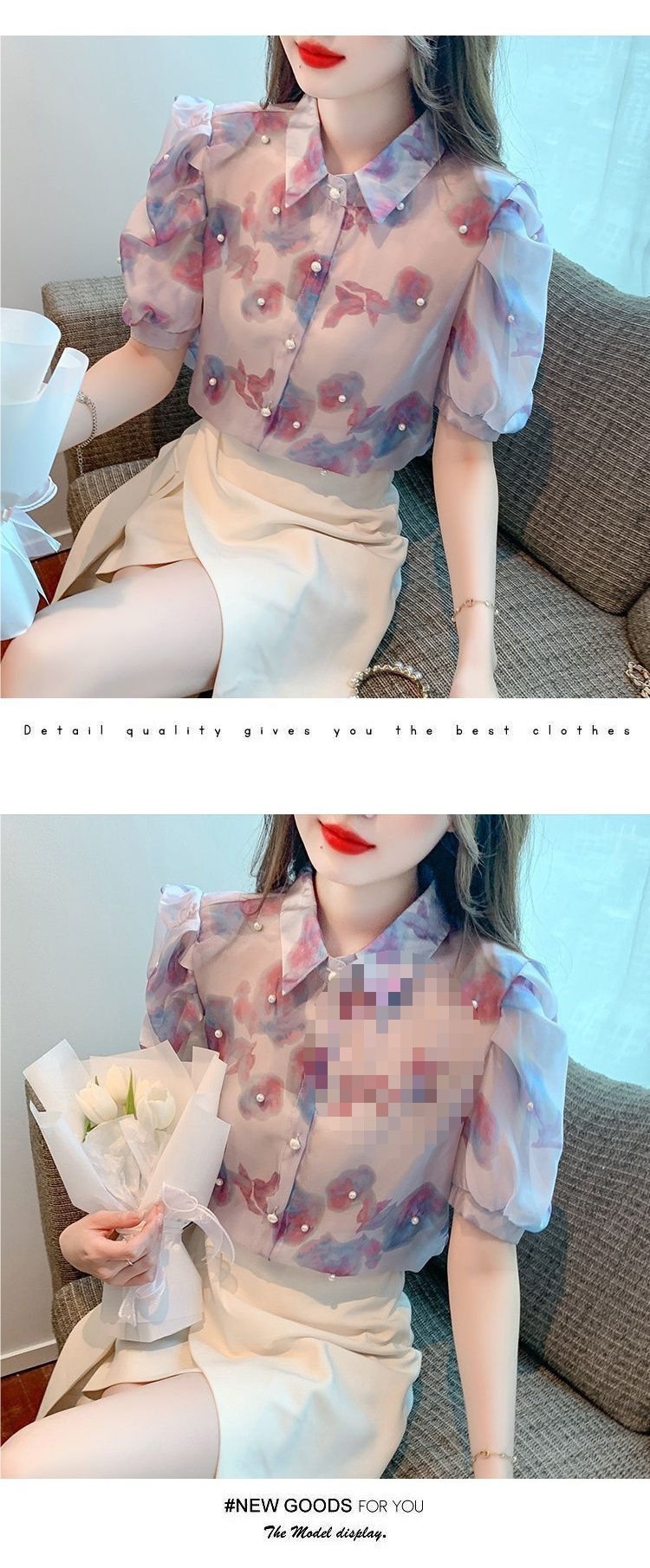 헤비 크래프트 비즈 쉬폰 셔츠 2025 여름 새로운 스타일 슬리밍 컬러 탑 여성 스위트 셔츠 탑스토어 가기