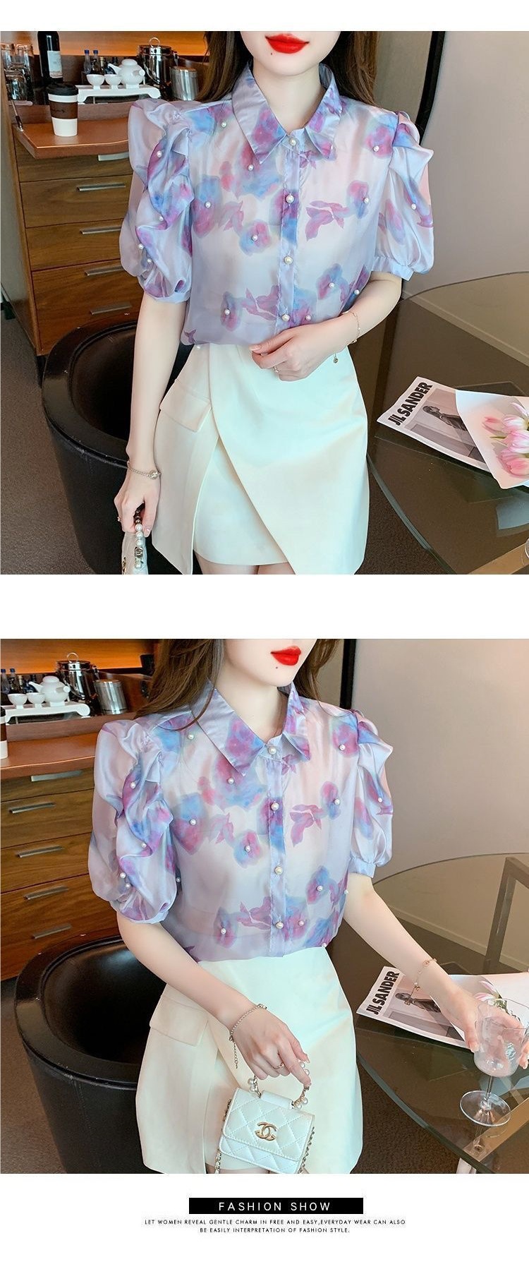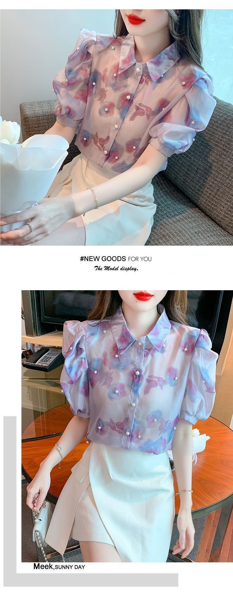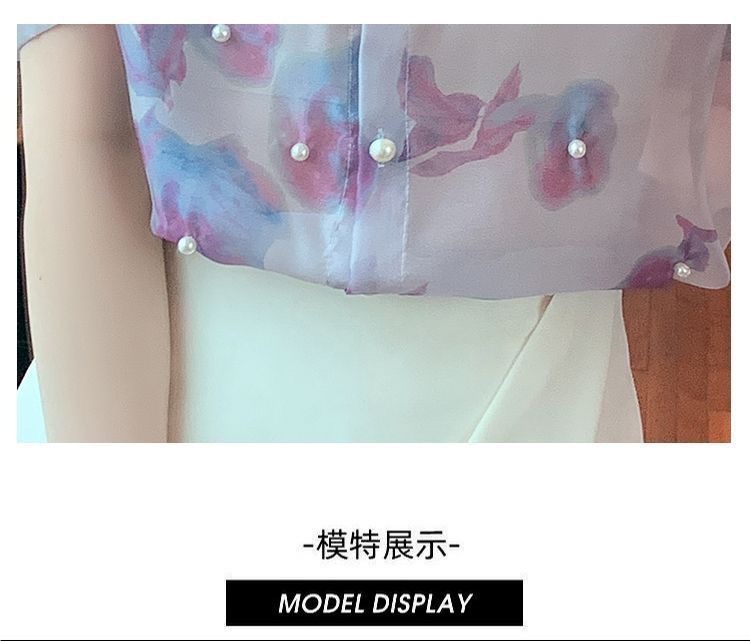 헤비 크래프트 비즈 쉬폰 셔츠 2025 여름 새로운 스타일 슬리밍 컬러 탑 여성 스위트 셔츠 탑스토어 가기
