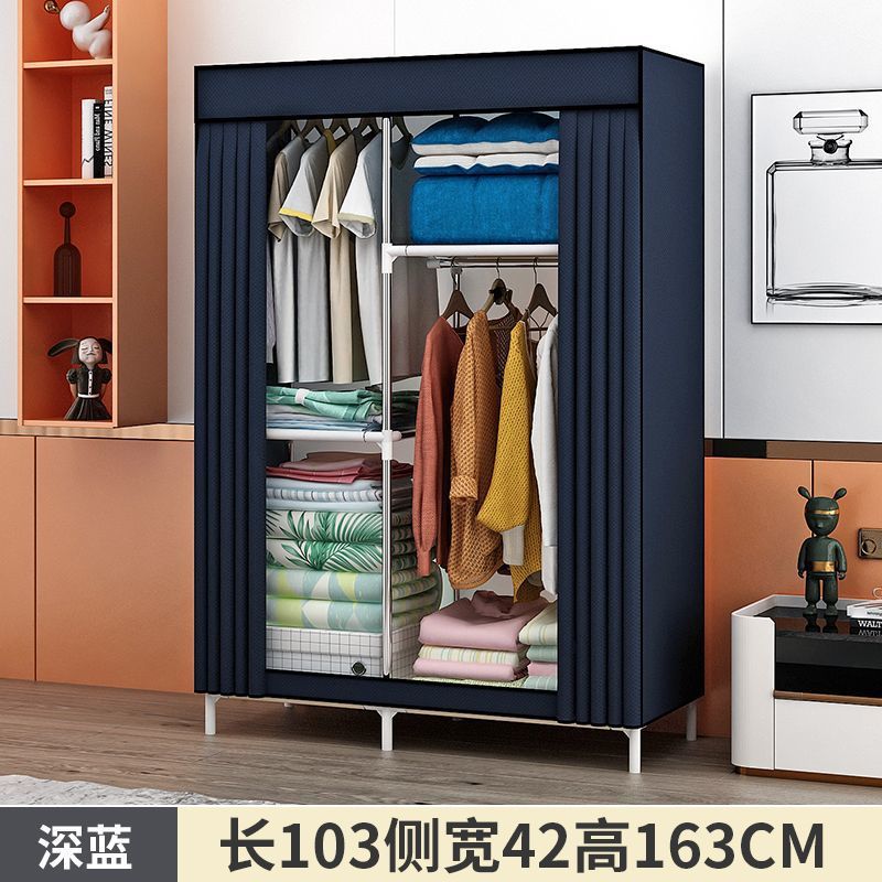 가정용 침실용 간단한 옷장 강철 파이프 강철 프레임 강화 조립 임대 주택 두껍고 내구성이 뛰어난 수납 바닥 천 옷장