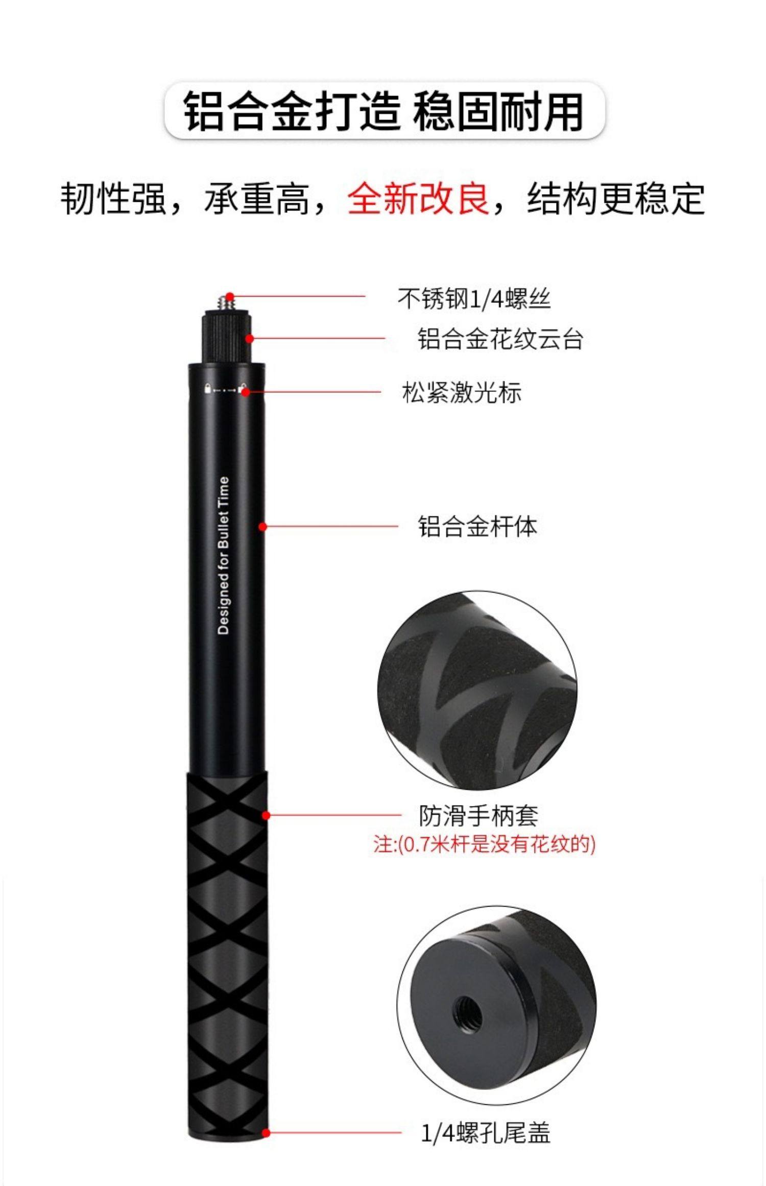Insta360 X5/X4/X3/파노라마 액션 카메라에 적합 휴대용 연장 막대 보이지 않는 셀카 스틱 브래킷