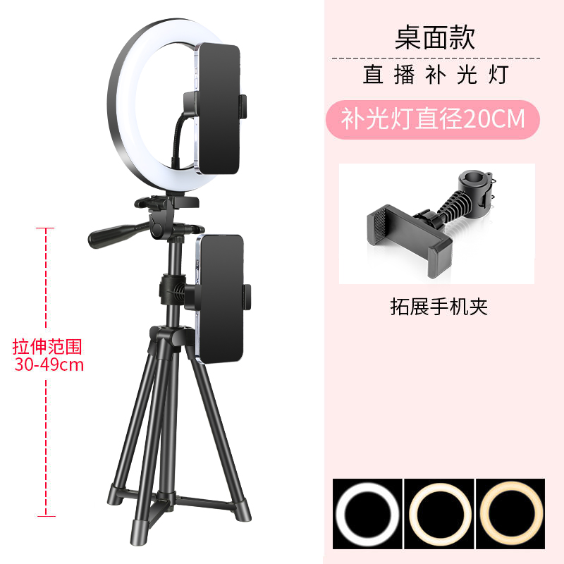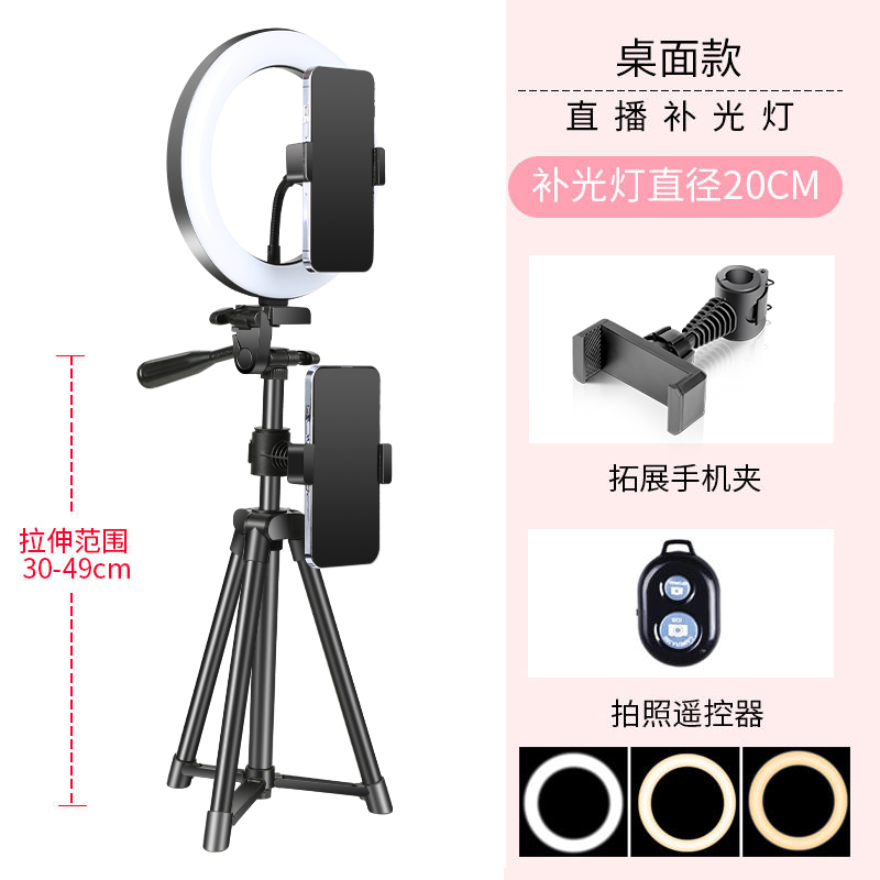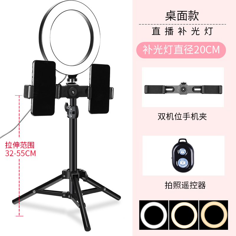 • 데스크탑 싱글 카메라 + 20CM 링 라이트 + 셀카 [업그레이드된 브래킷]