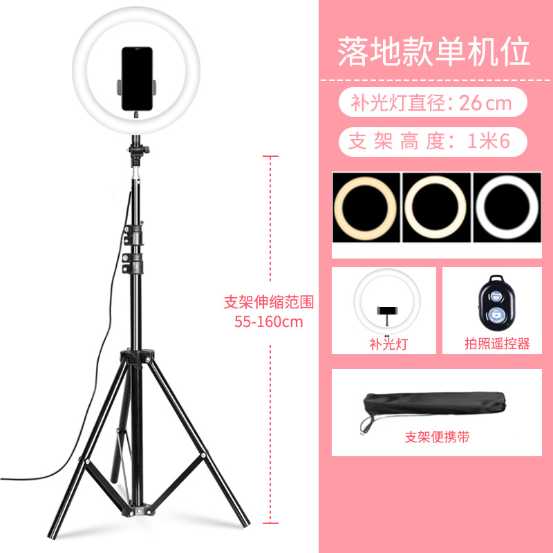 • 2.1m 싱글 카메라 + 26CM 링 라이트(대형 라이트) + 셀카