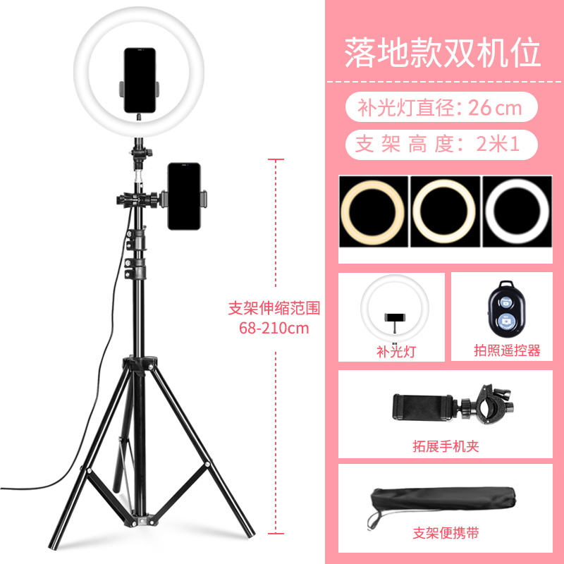 • 2.1m 듀얼 카메라 + 26CM 링 라이트(대형 조명) + 셀카