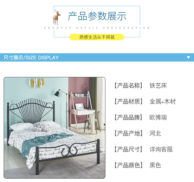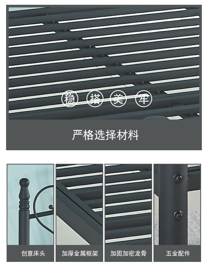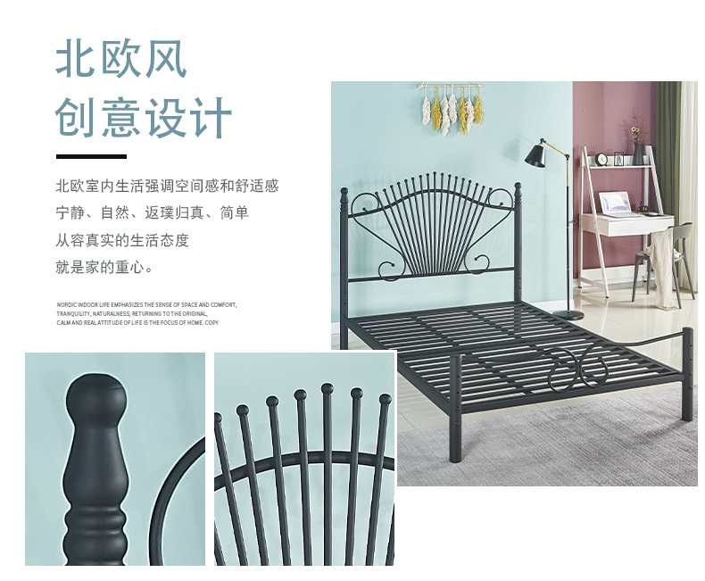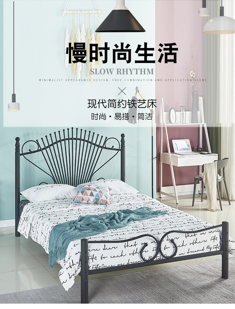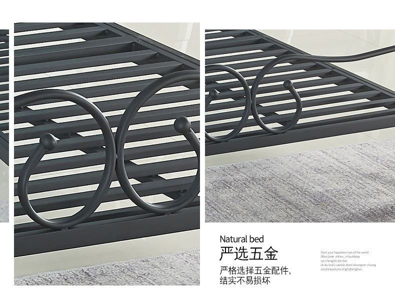 철제 침대 프레임 간단한 임대용 아파트 기숙사 금속 침대 패셔너블한 가정용 공주 침대 철제 프레임 더블 침대스토어 가기