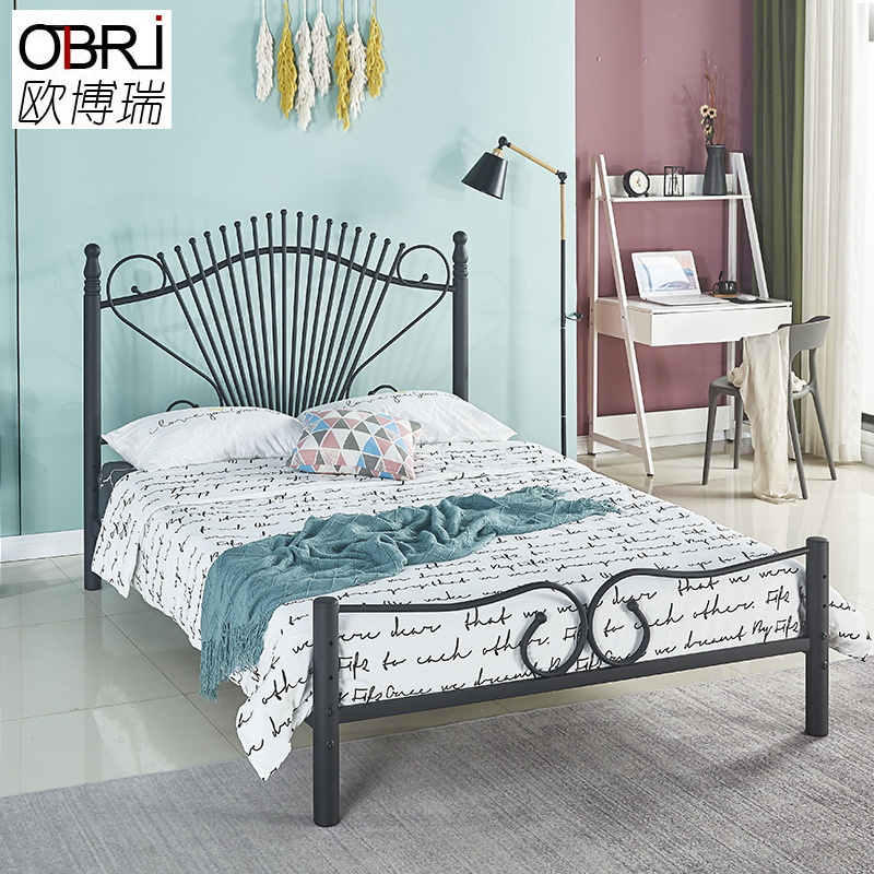 철제 침대 프레임 간단한 임대용 아파트 기숙사 금속 침대 패셔너블한 가정용 공주 침대 철제 프레임 더블 침대
