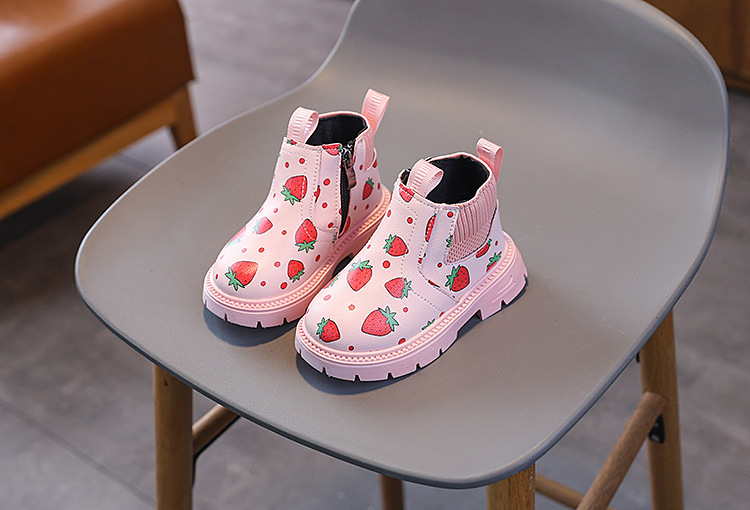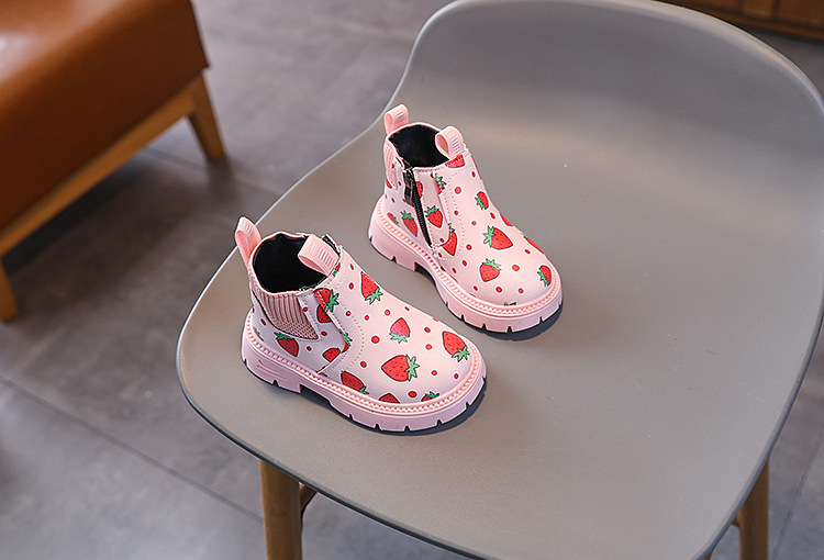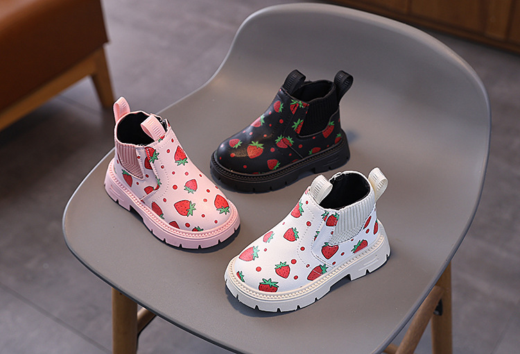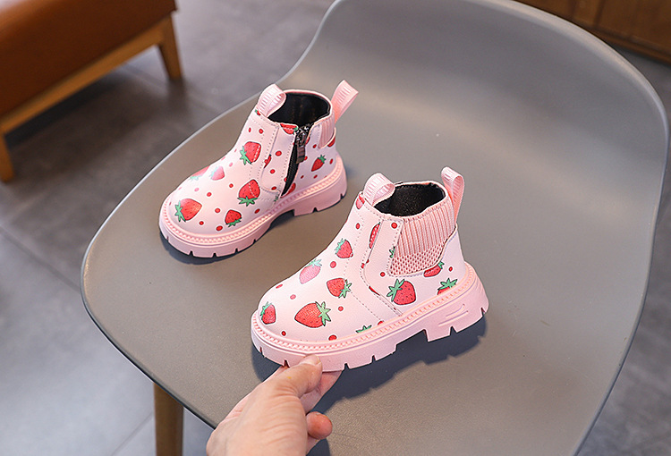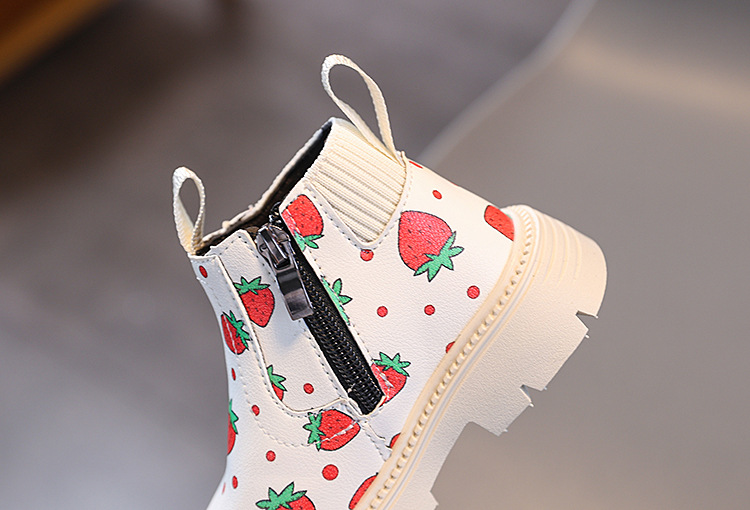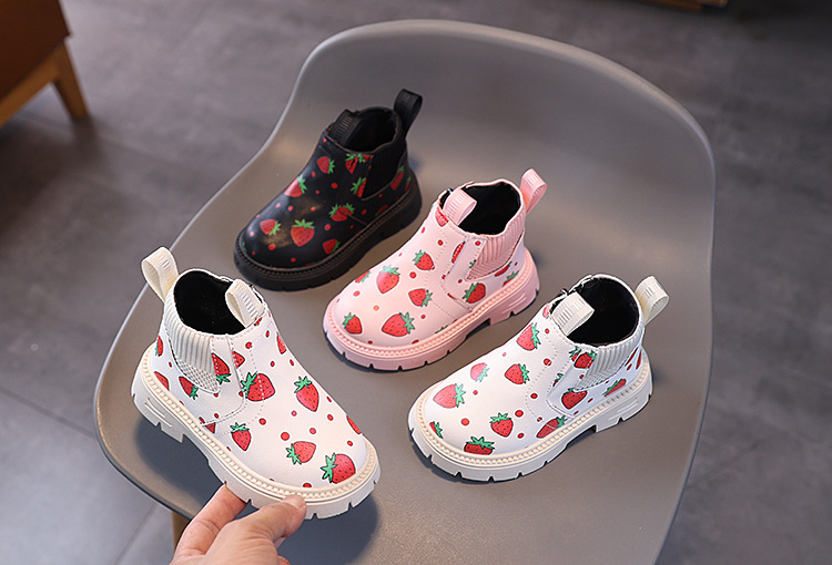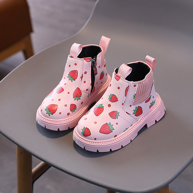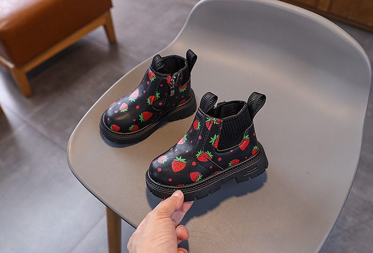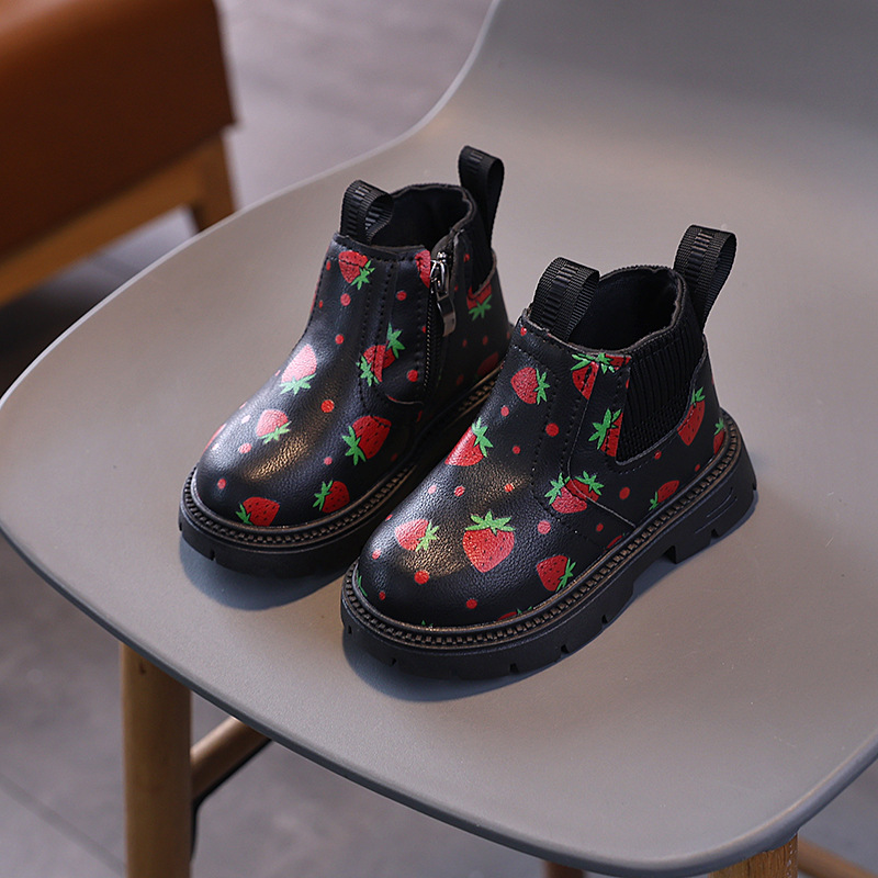 여아용 영국 스타일 가죽 부츠 2025 가을 겨울 신상 여아용 마틴 부츠 귀여운 딸기 프린트 숏부츠스토어 가기