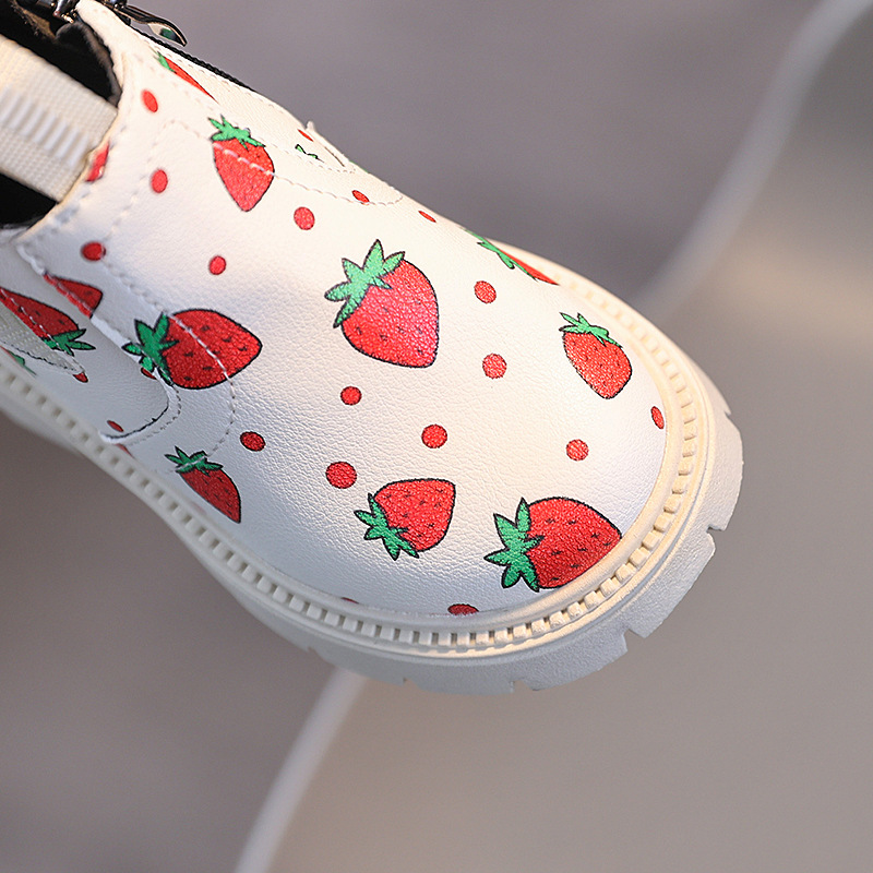 여아용 영국 스타일 가죽 부츠 2025 가을 겨울 신상 여아용 마틴 부츠 귀여운 딸기 프린트 숏부츠
