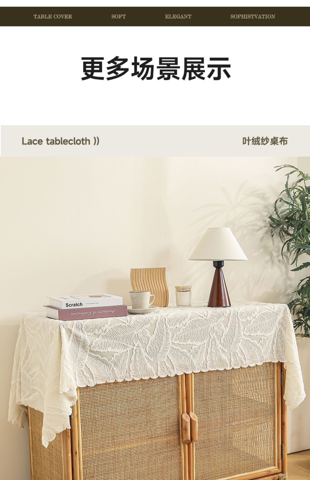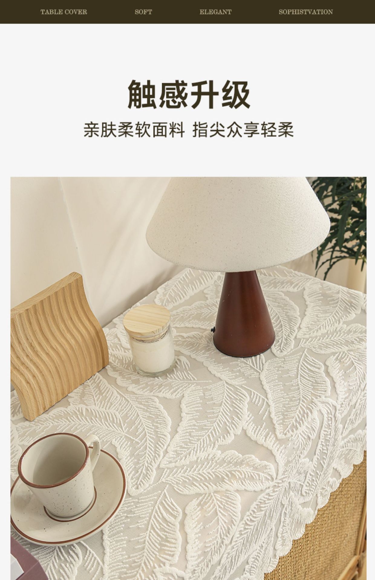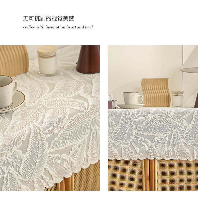 • 흰색 잎 벨벳 식탁보 ☆