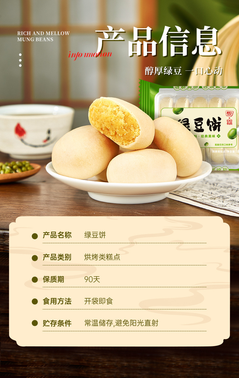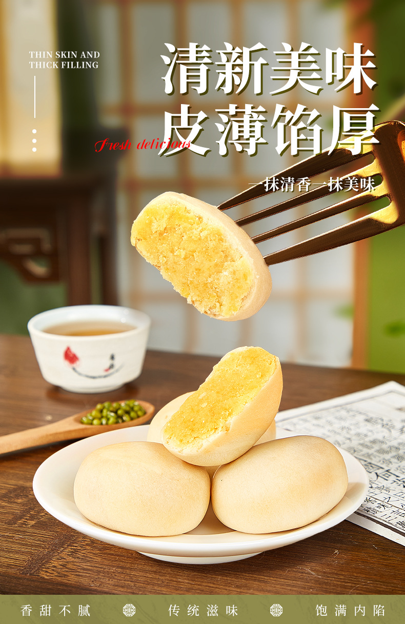 아이스크림 녹두 케이크 전통 갈망 해소 페이스트리 스낵 스낵 박스형 정통 전통 수제 영양가 있는 아침 간식