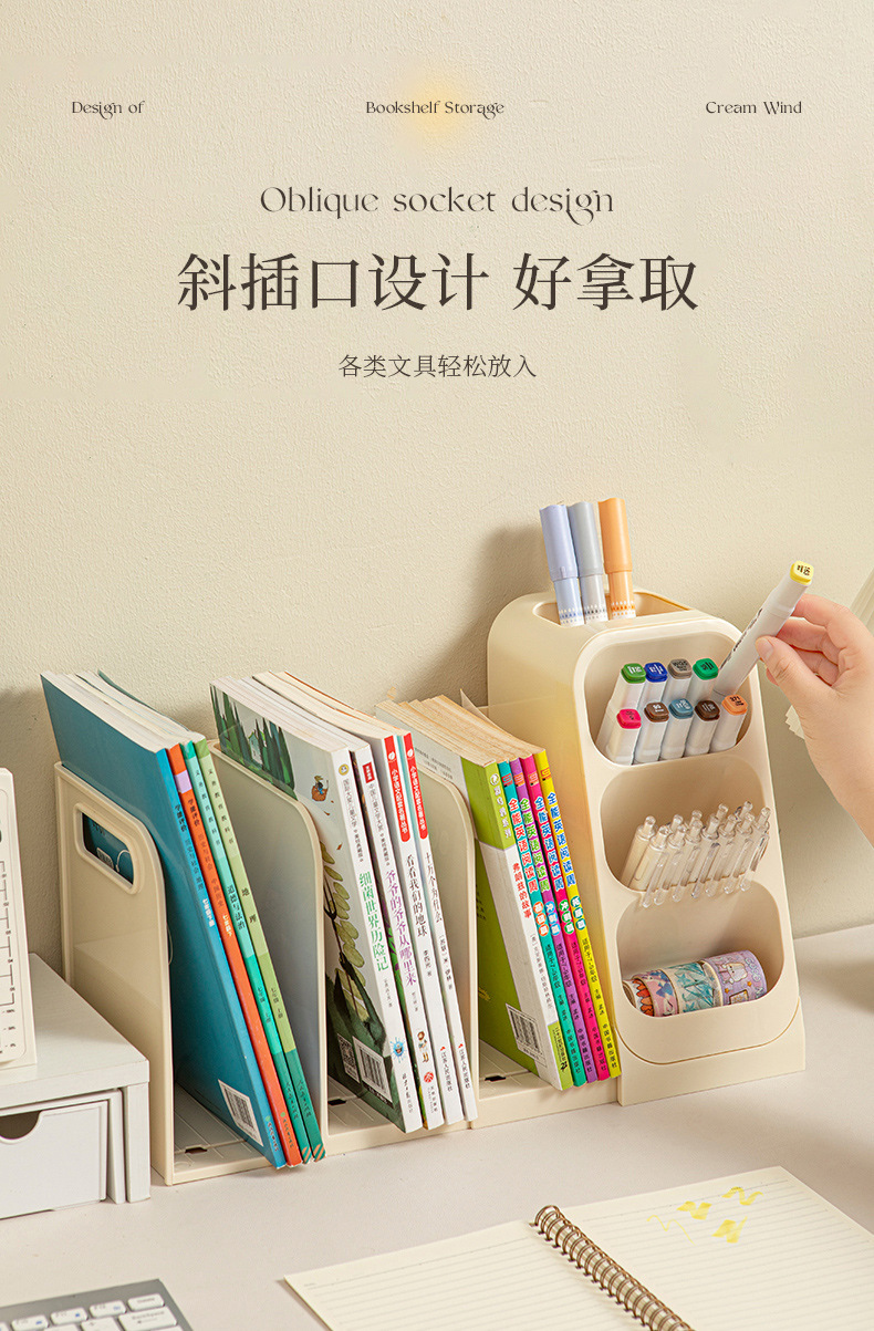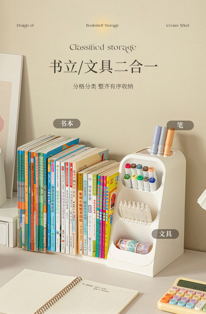 • 접이식 북엔드 펜 홀더 - 크림 화이트