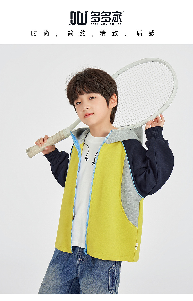 Duojia 소년 코트 2025 봄, 가을 대학 컬러 매칭 다목적 후드 탑 아동 스포츠 및 레저 카디건