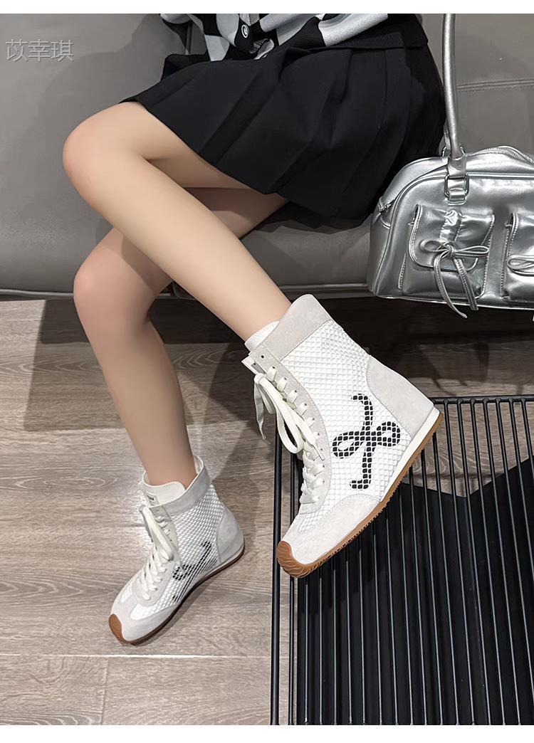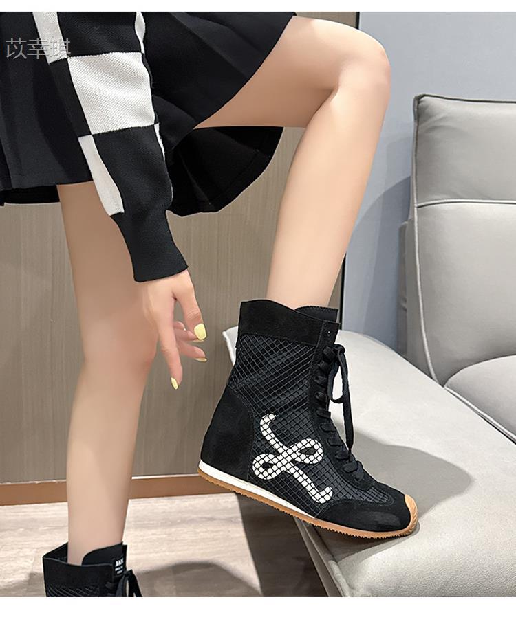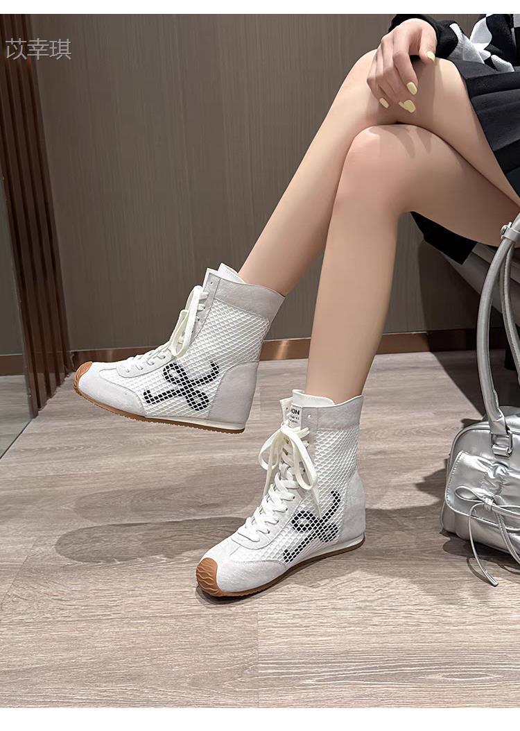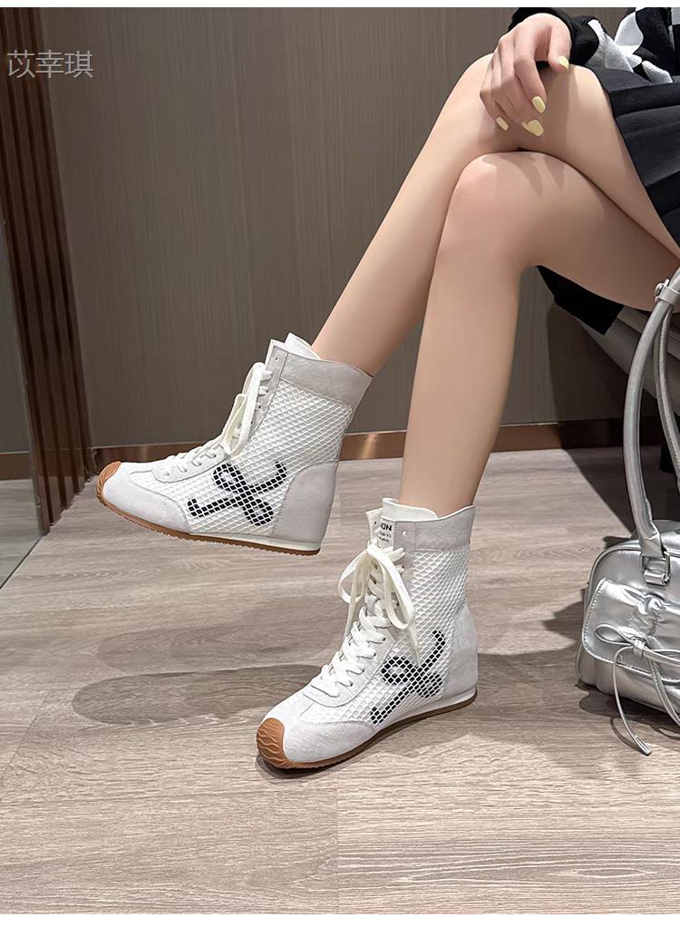 소가죽 버전 ~ 6cm 높이 증가 여성용 여름 통기성 마틴 부츠 부드러운 밑창 복고풍 틸트 헤드 숏부츠 메쉬 부츠스토어 가기