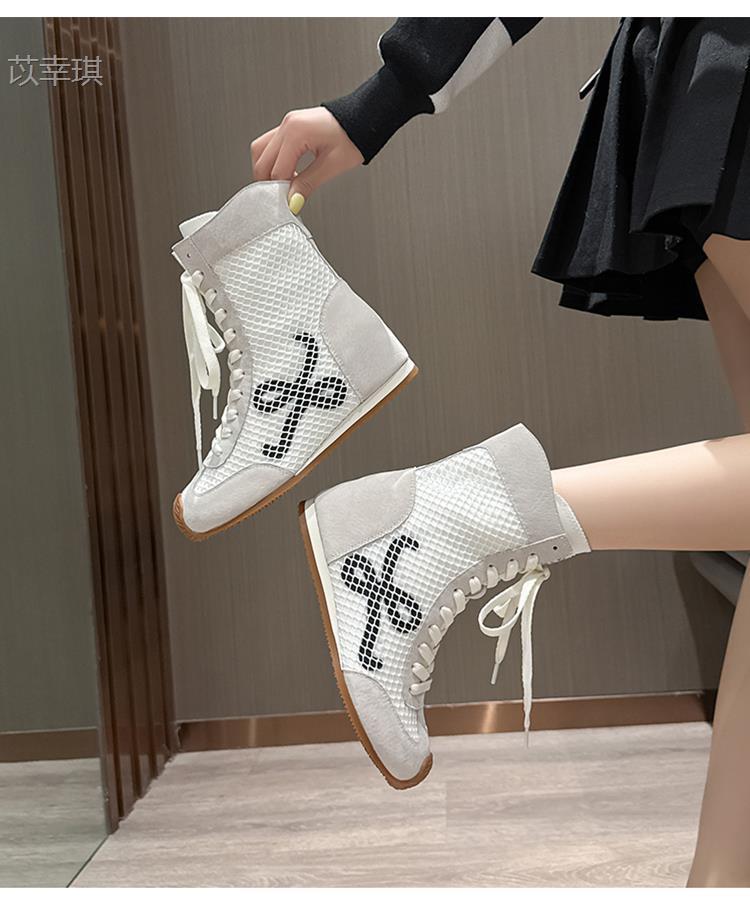 소가죽 버전 ~ 6cm 높이 증가 여성용 여름 통기성 마틴 부츠 부드러운 밑창 복고풍 틸트 헤드 숏부츠 메쉬 부츠