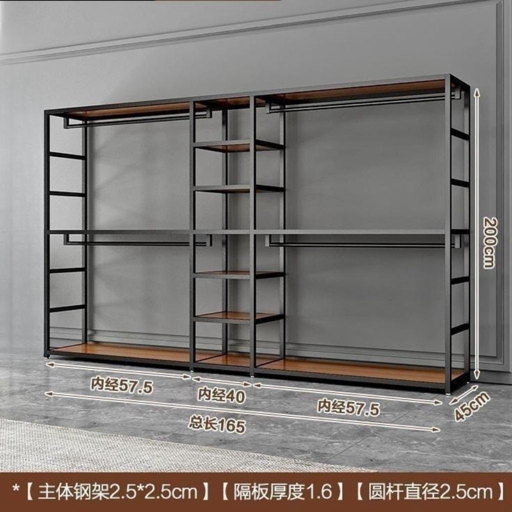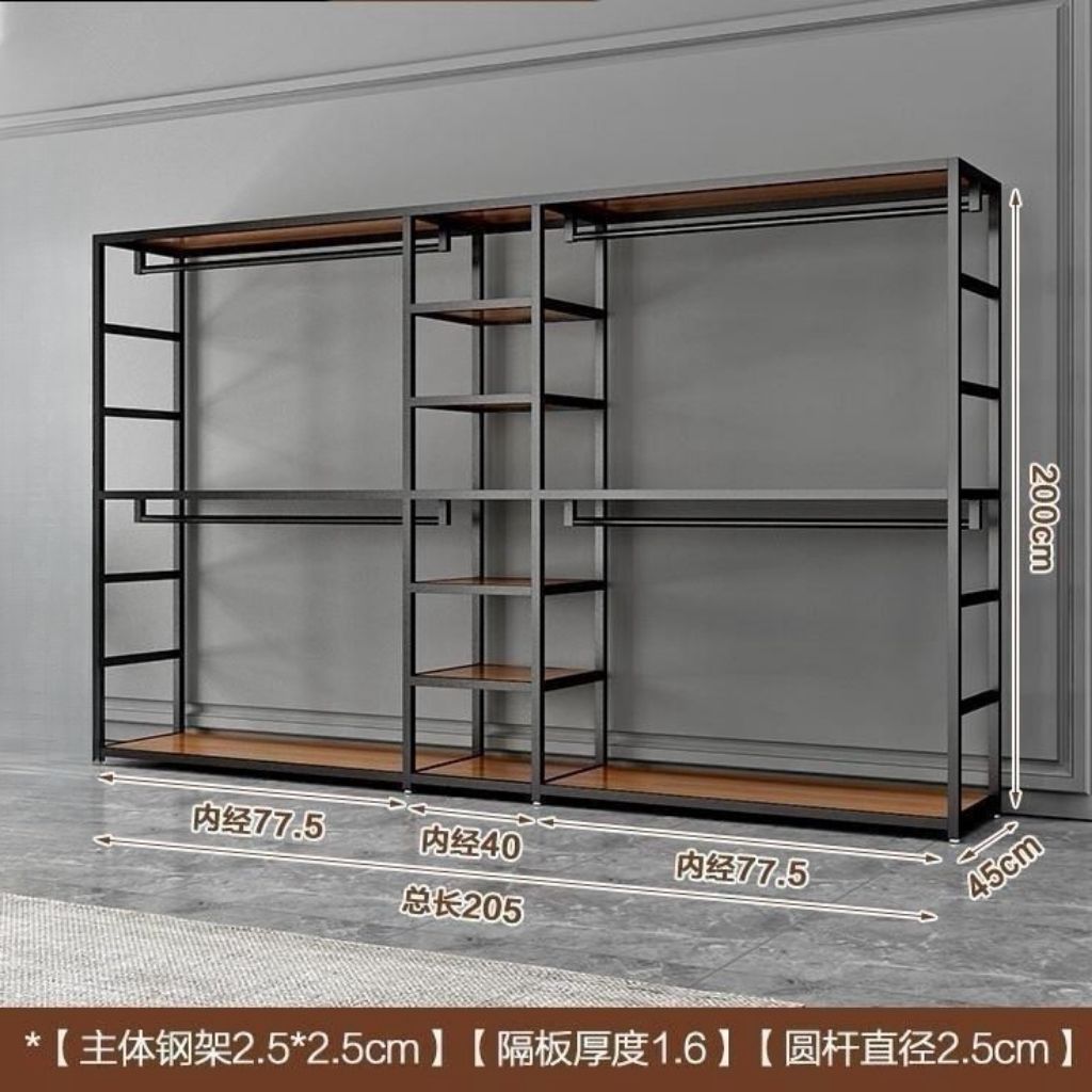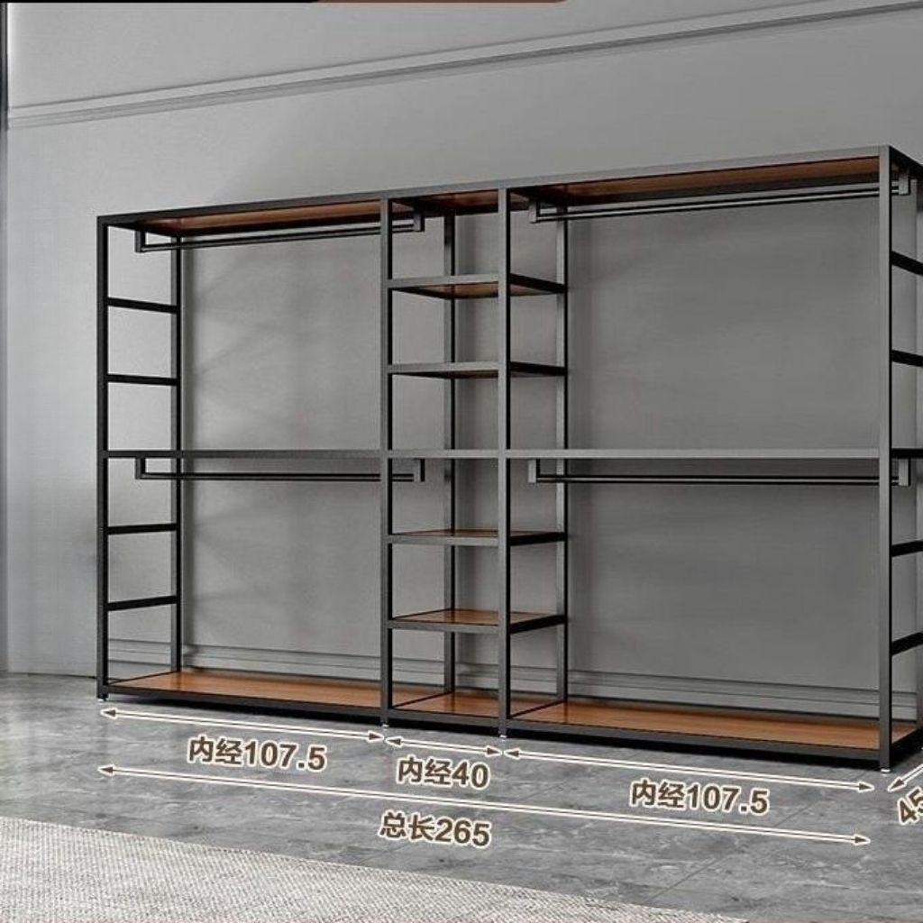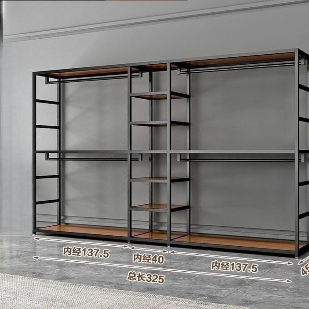 바닥에서 천장까지 개방형 금속 옷장 옷걸이 조합 이중 침실 수납 선반 옷장스토어 가기