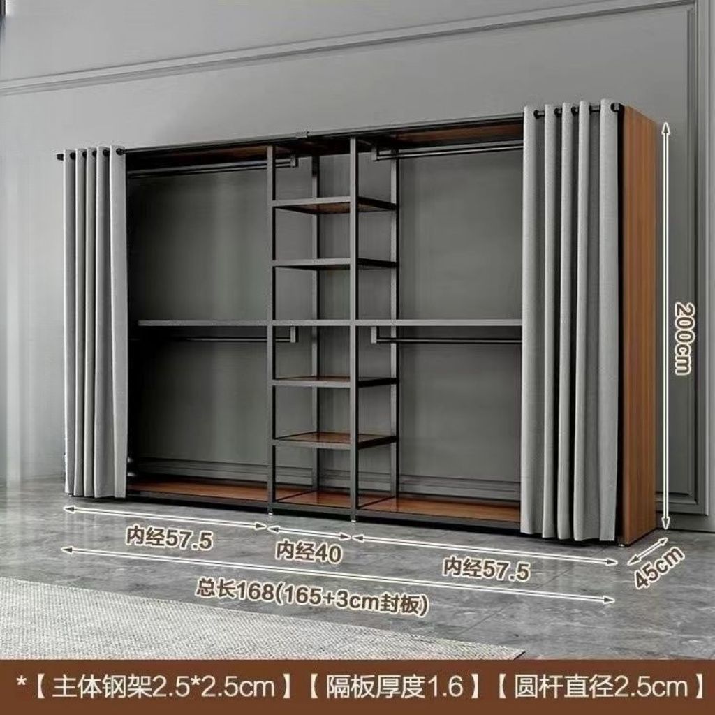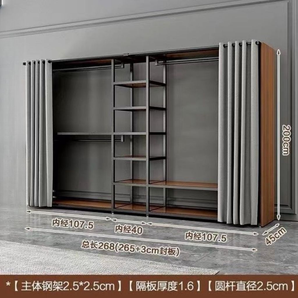 바닥에서 천장까지 개방형 금속 옷장 옷걸이 조합 이중 침실 수납 선반 옷장