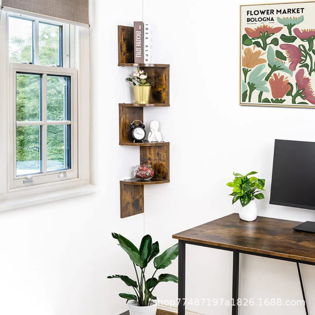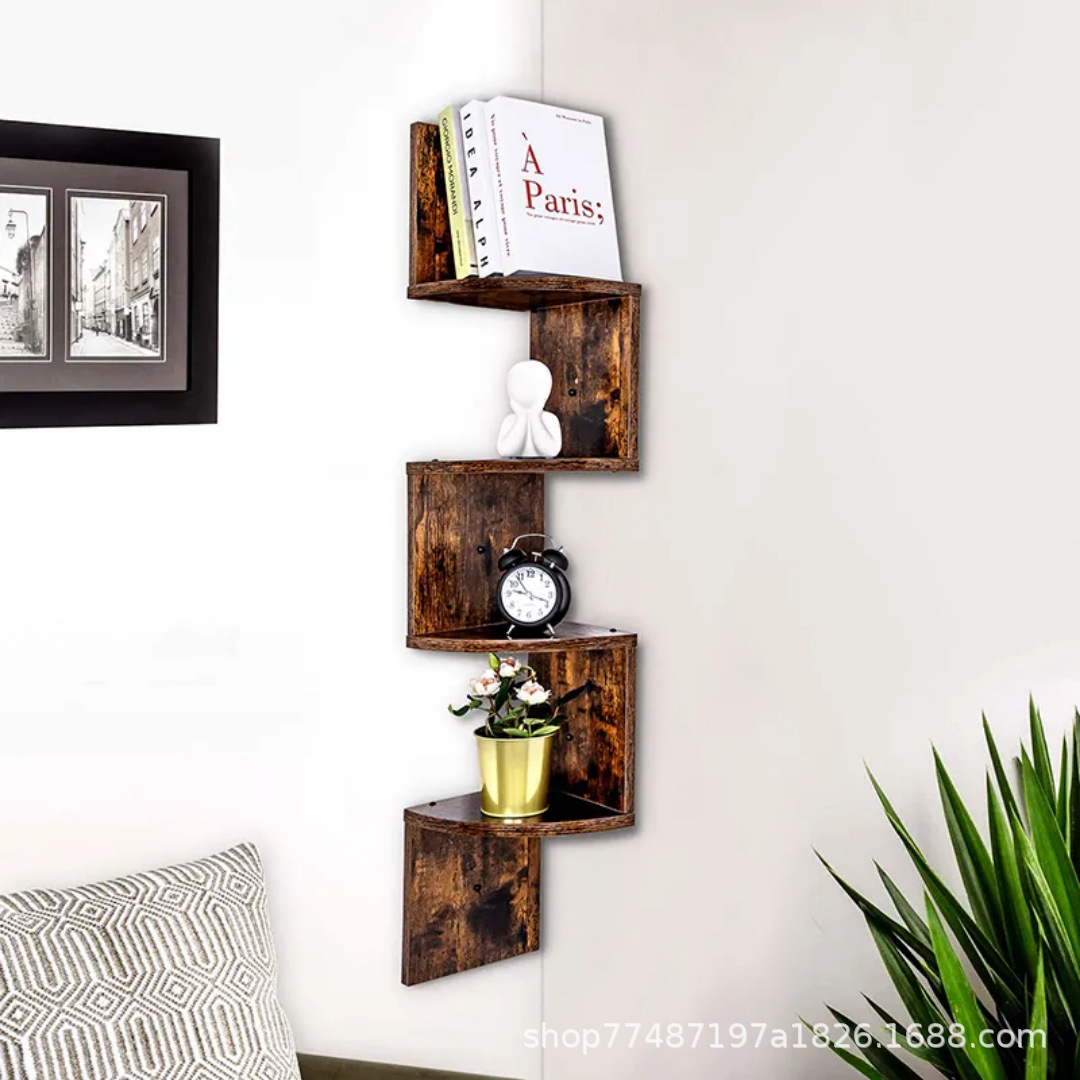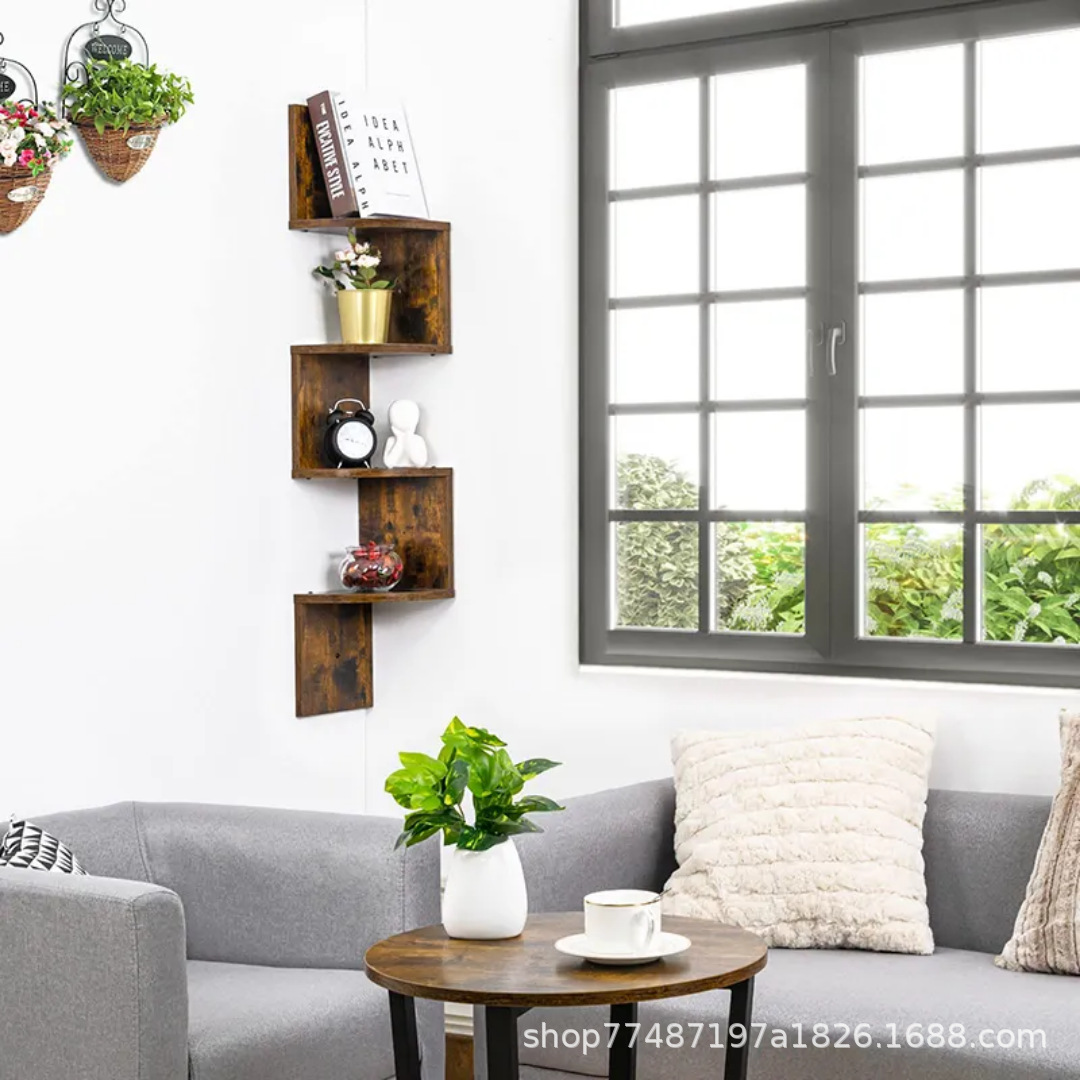 나무 벽 수납 선반 침실 거실 벽걸이 선반 코너 선반 다층 책장 주방 욕실 수납 선반스토어 가기