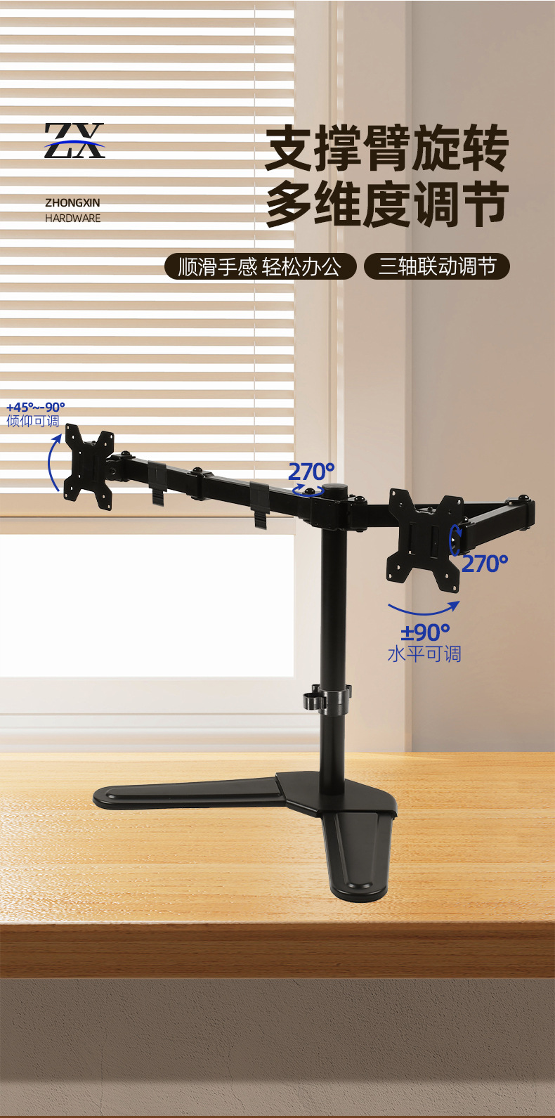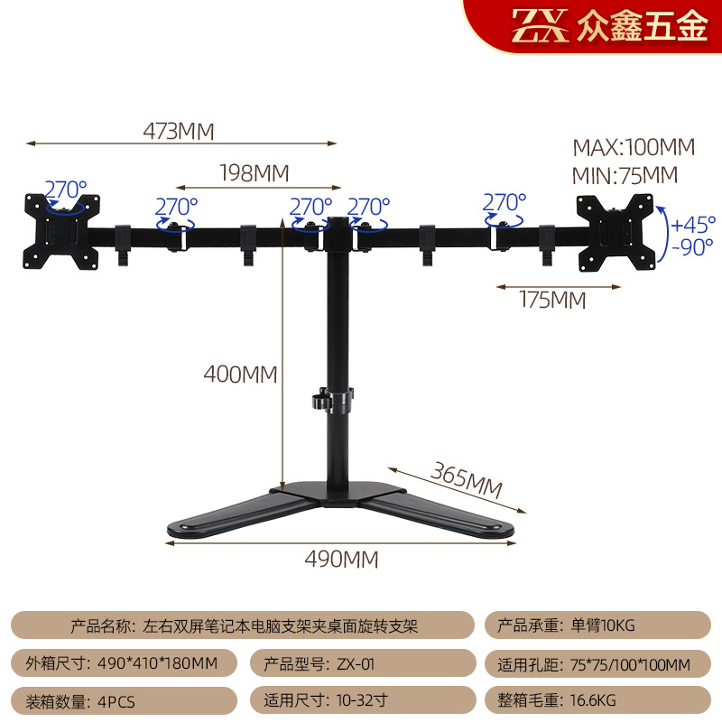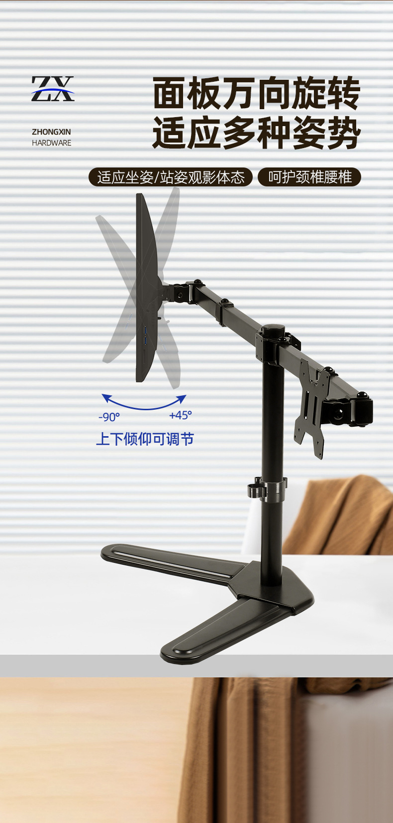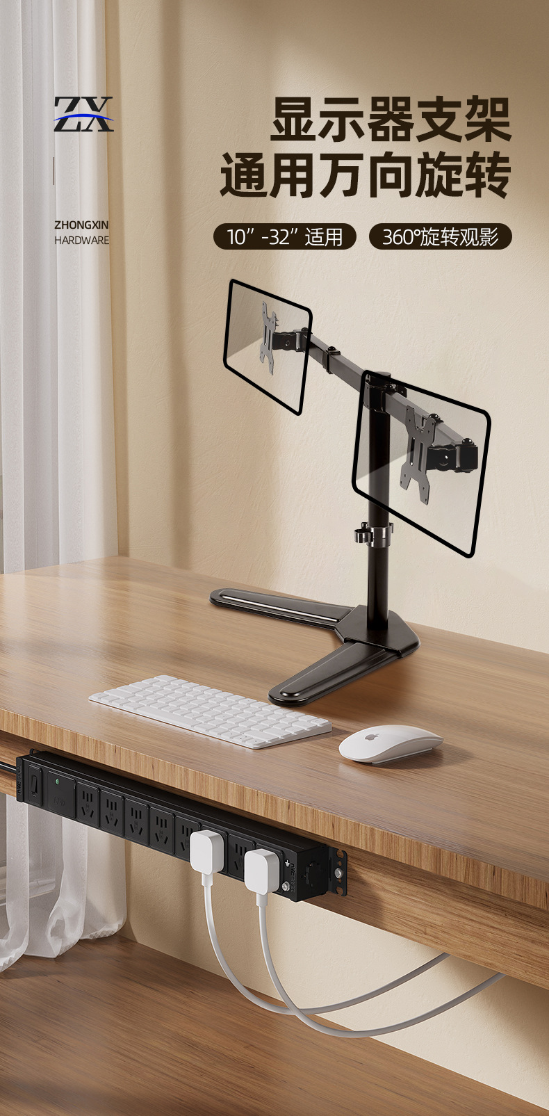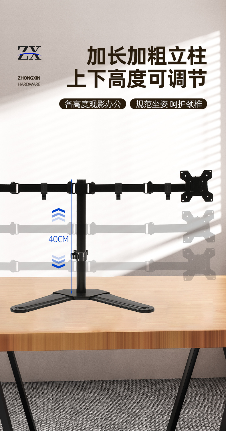 10-32인치 모니터 스탠드, 캔틸레버 결합 회전형 컴퓨터 스탠드, 높이 조절 및 확장 가능한 데스크탑 모니터 스탠드