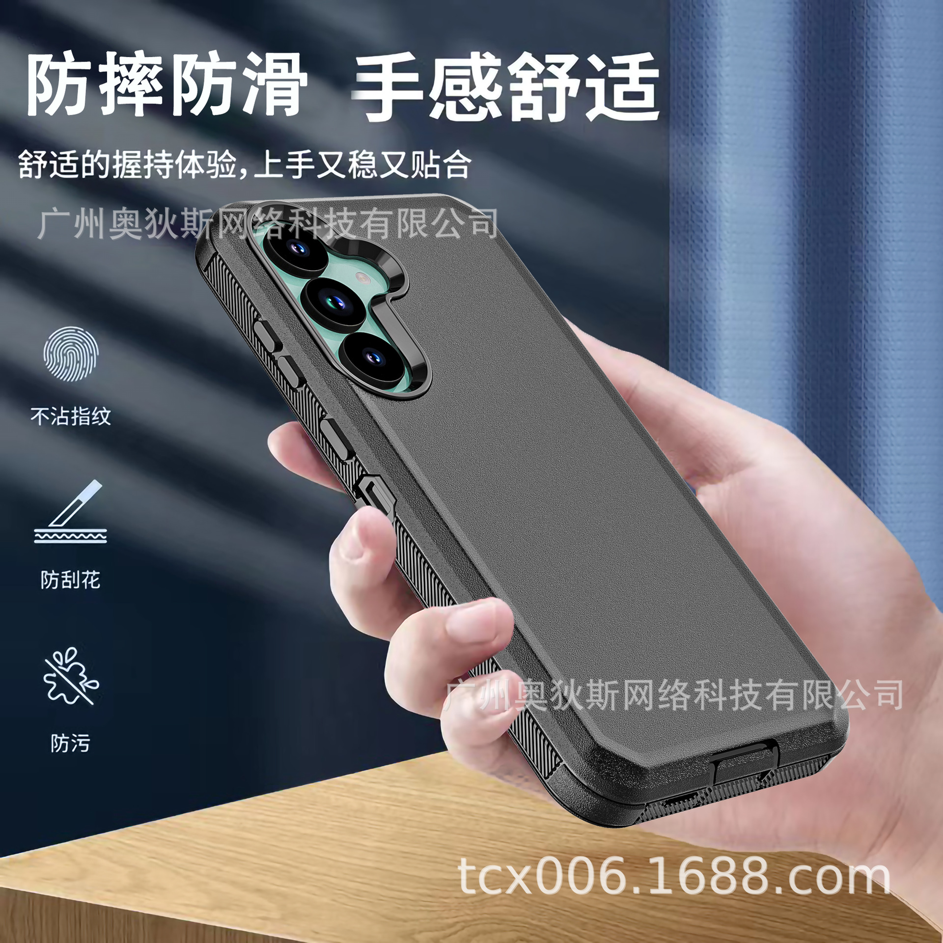 2.【设计构思】双层防护,三项材质结合,内层是由2个PC硬壳前后组成,可以的固定手机不容易松动,可以的屏幕不被划伤, 外层是TPU,在内层的保护之下,外层起到了一种缓冲作用.可以的过度的碰撞而损坏程度。