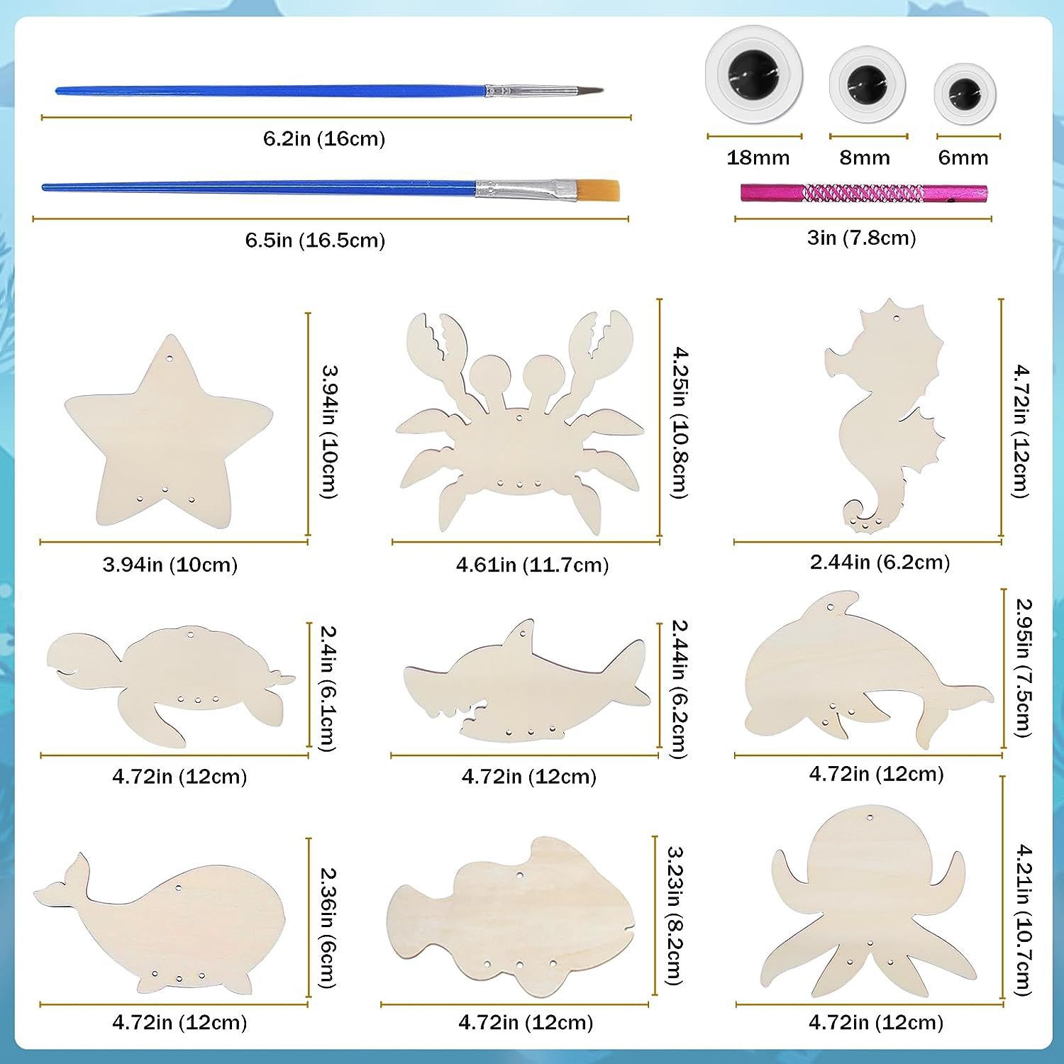 • 고슴도치 나무 조각 5개 + 풍경 20개 + 브러쉬 2개 + 스티커 + 실 5m개