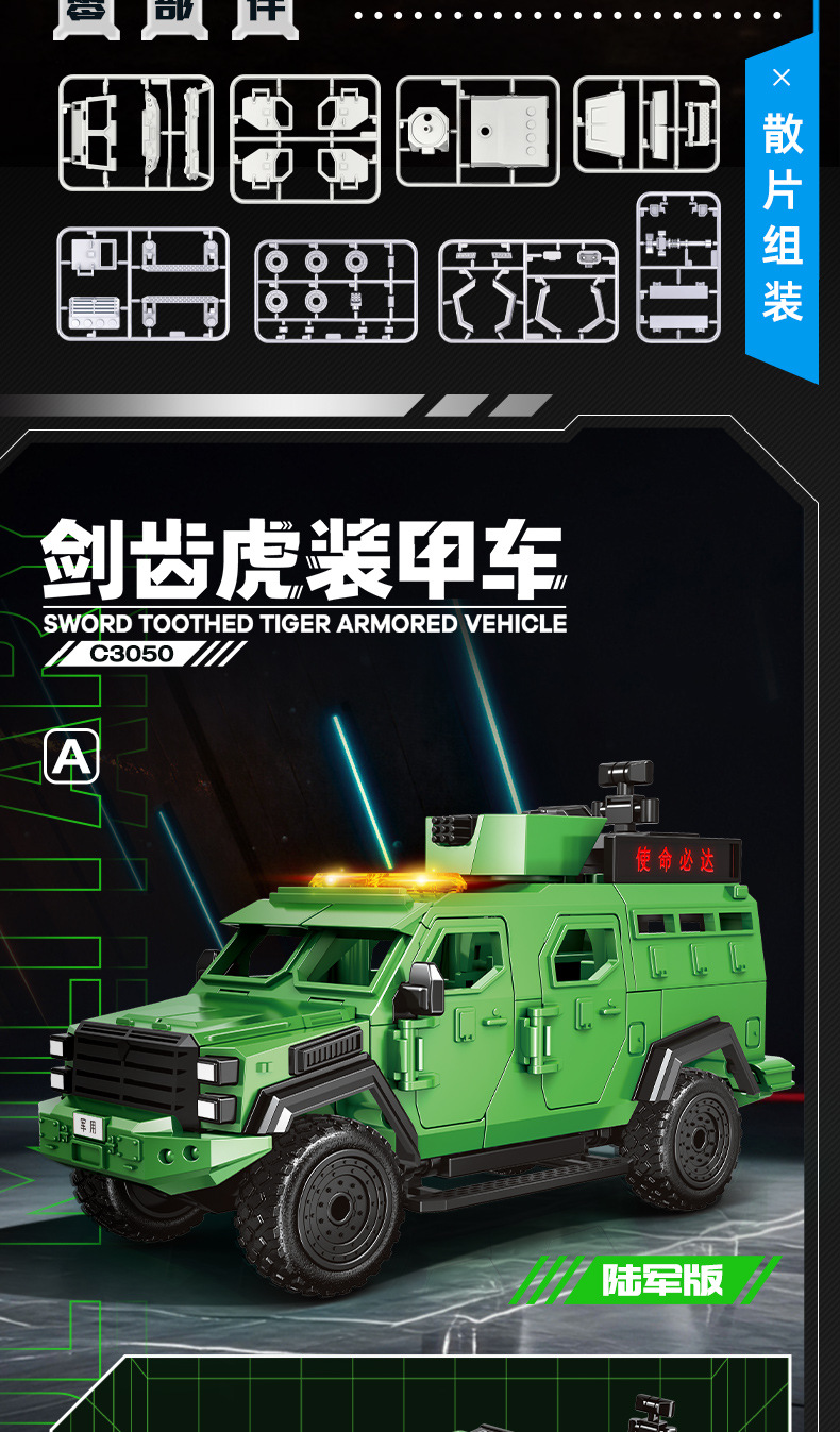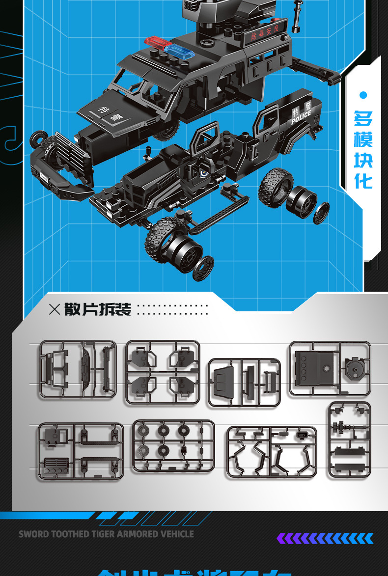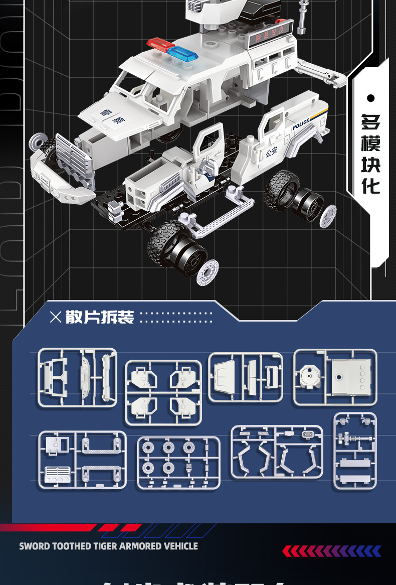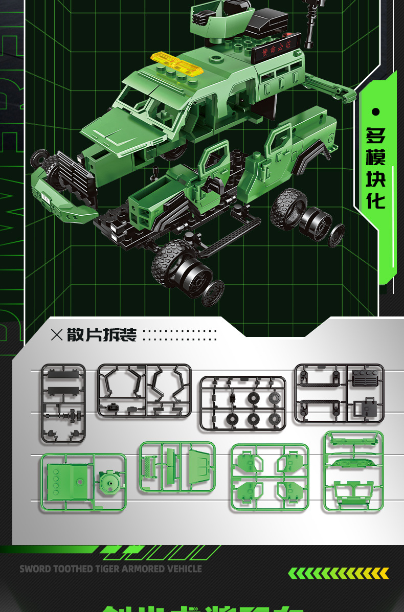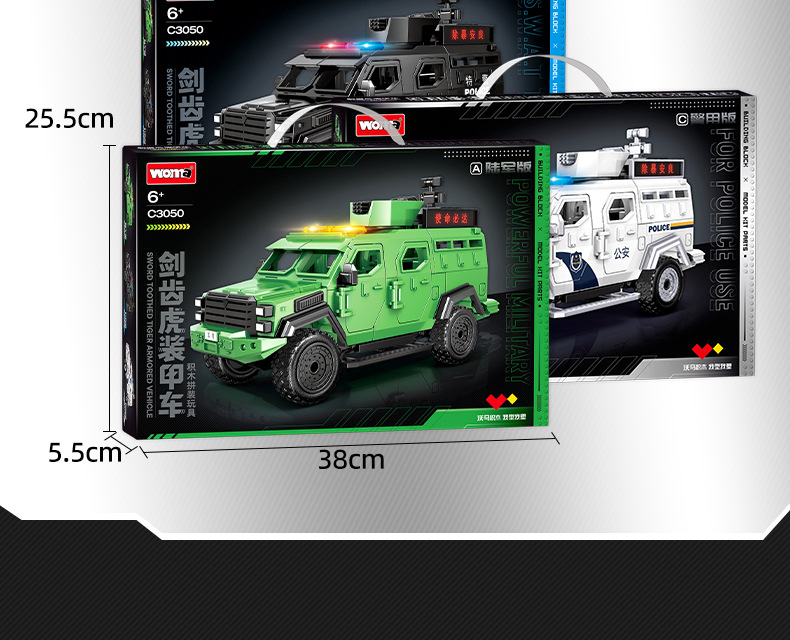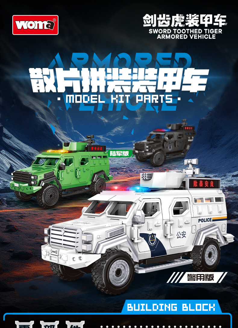 Woma 빌딩 블록 조립 Saber-Toothed Tiger 장갑차 군사 SWAT 차량 조립 모델 소년 교육 어린이 장난감스토어 가기