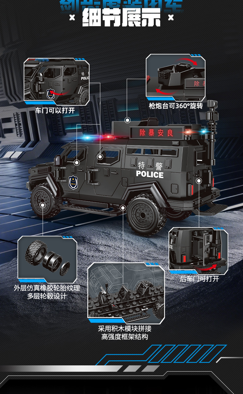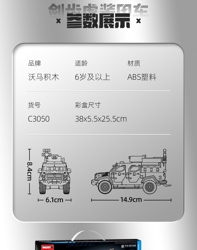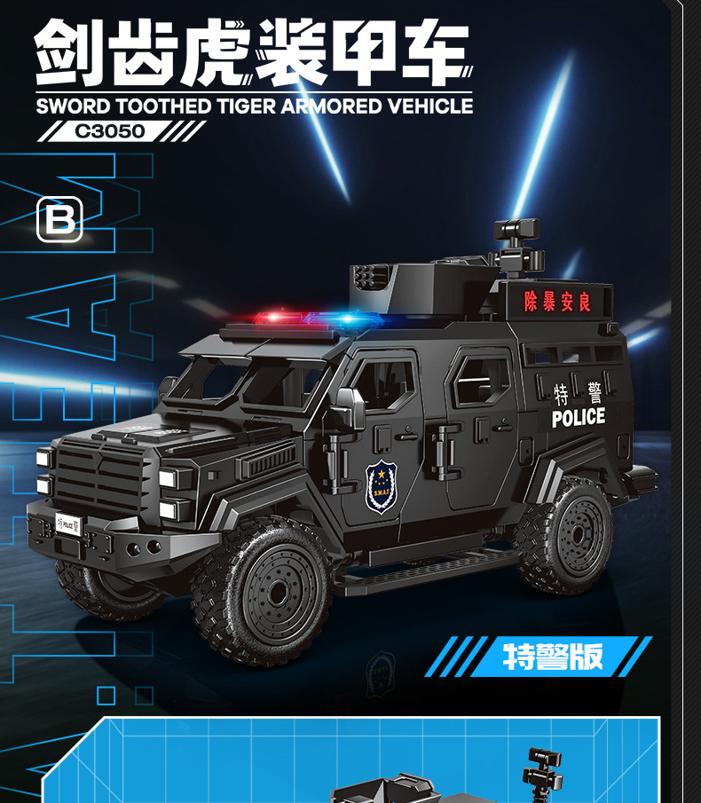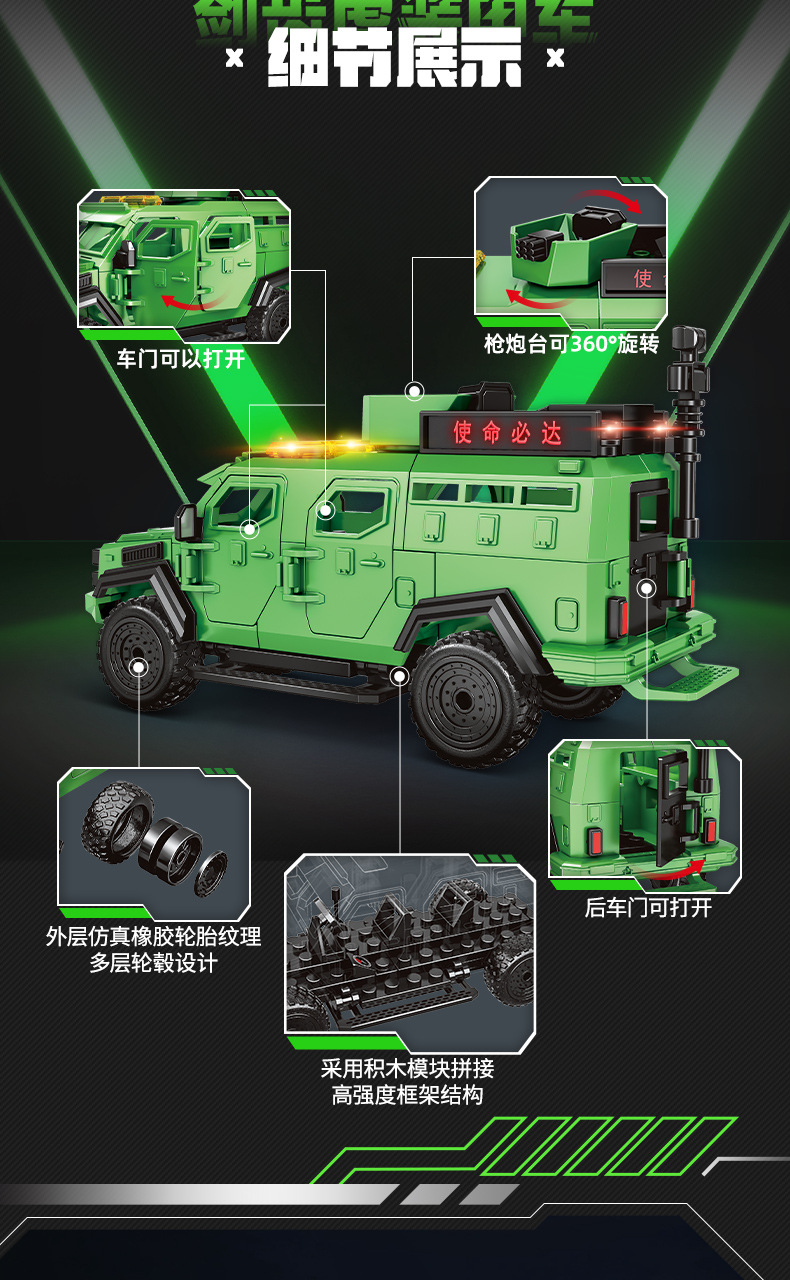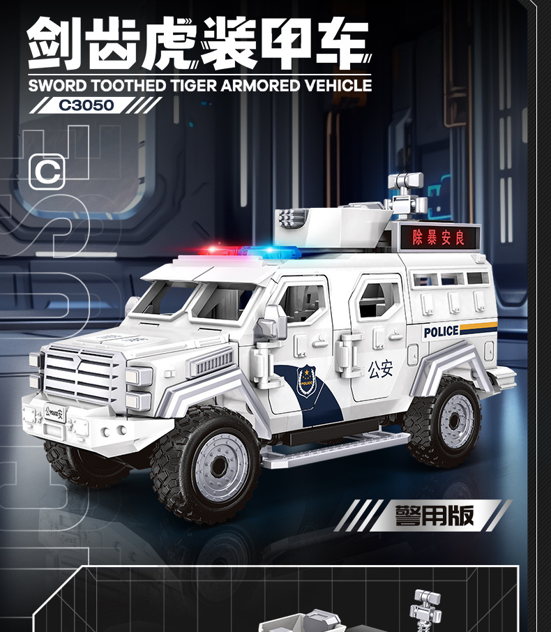 Woma 빌딩 블록 조립 Saber-Toothed Tiger 장갑차 군사 SWAT 차량 조립 모델 소년 교육 어린이 장난감스토어 가기