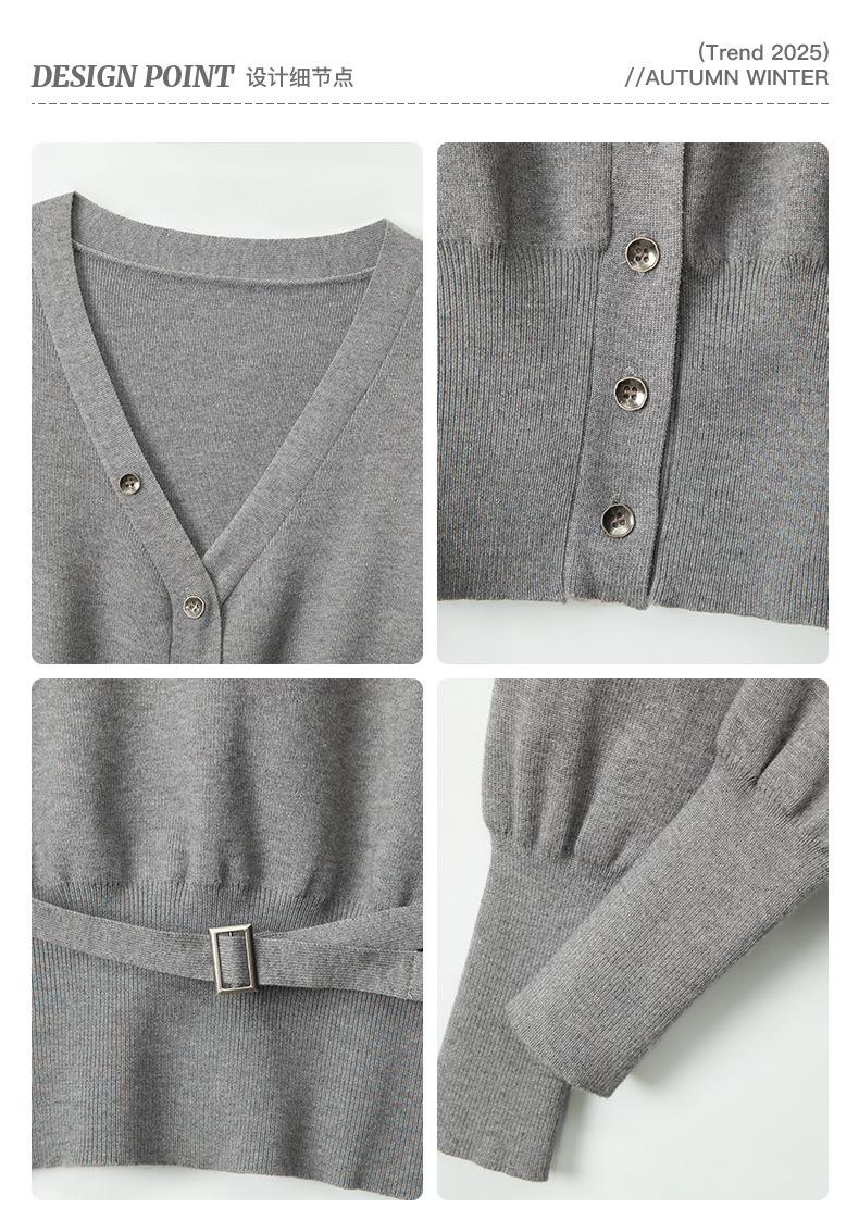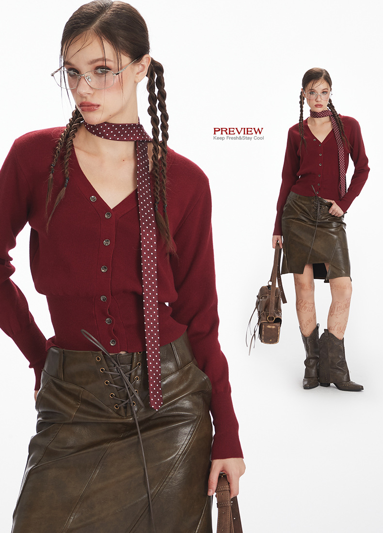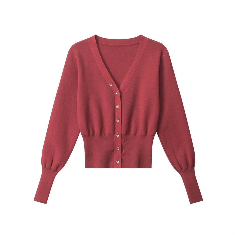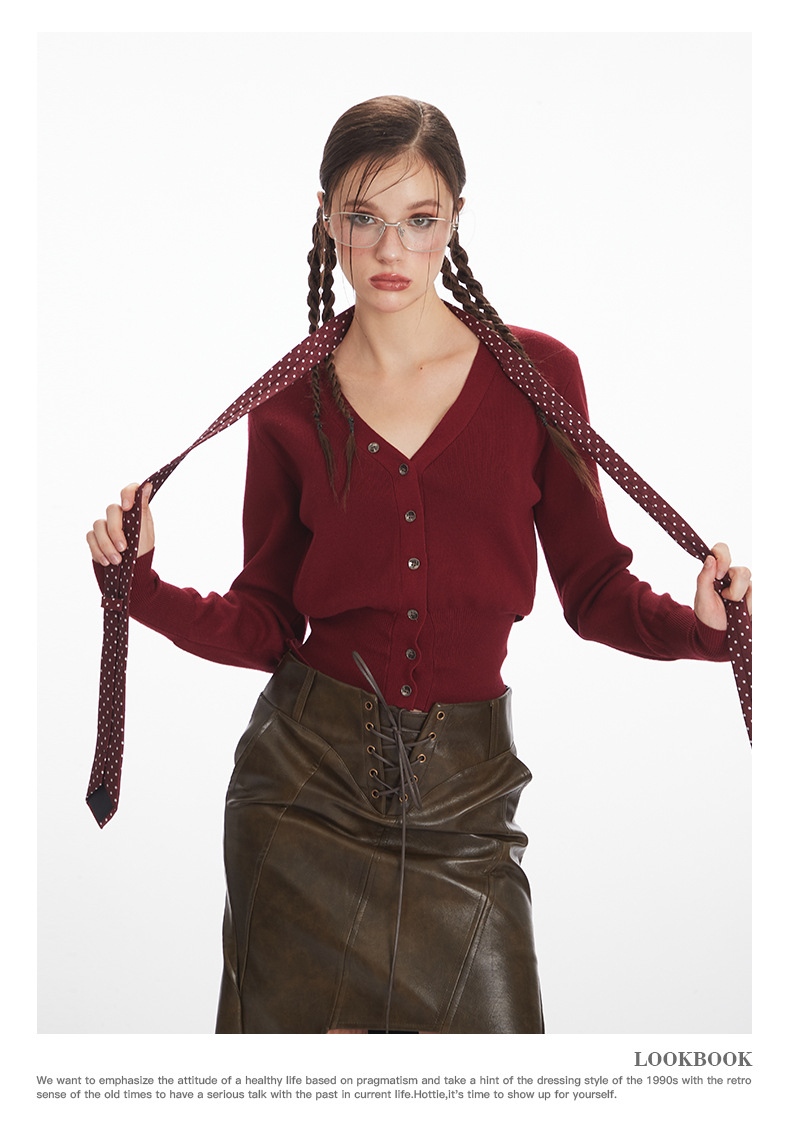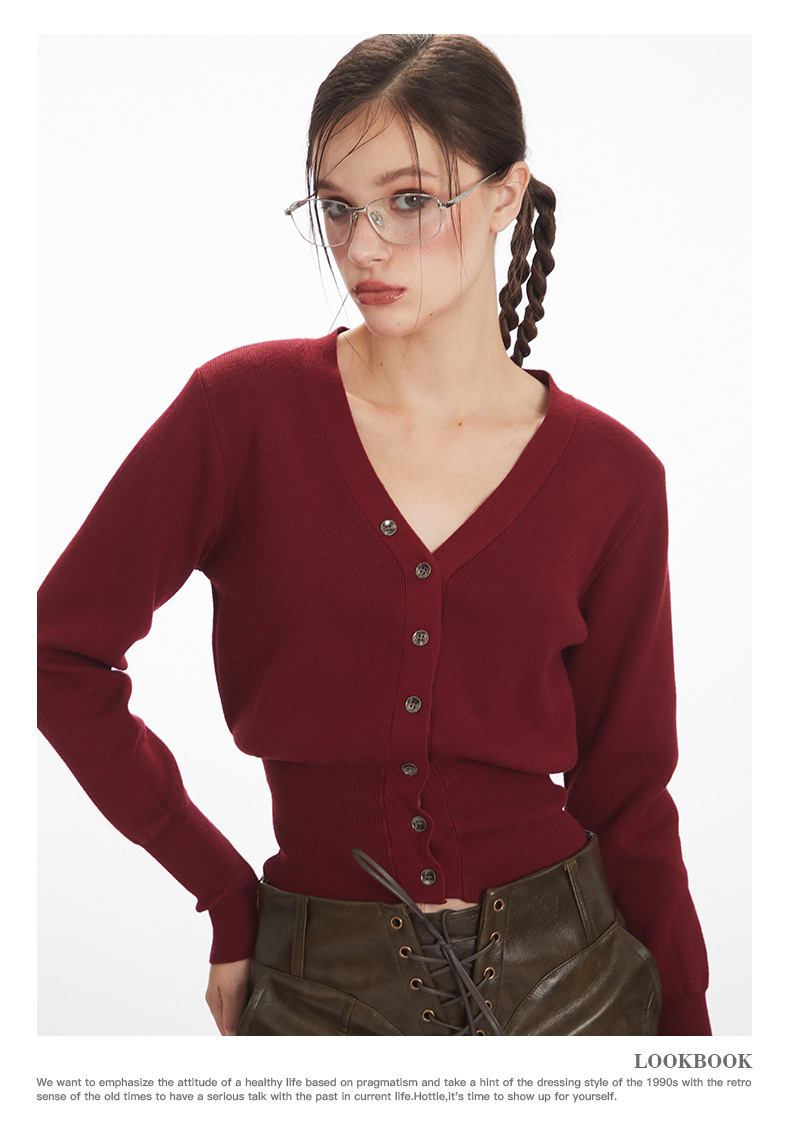 HeyHenry 레트로 가을 겨울 긴팔 브이넥 스웨터 여성 카디건 허리 슬리밍 코트 탑