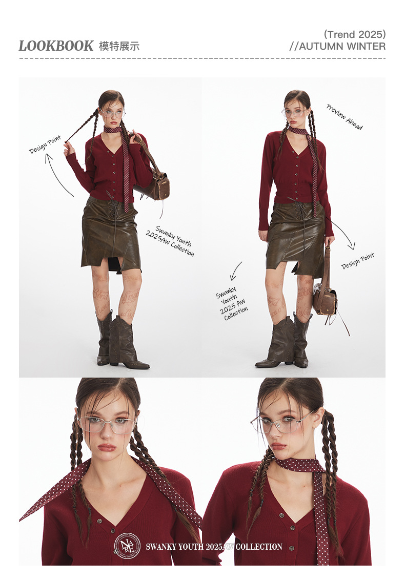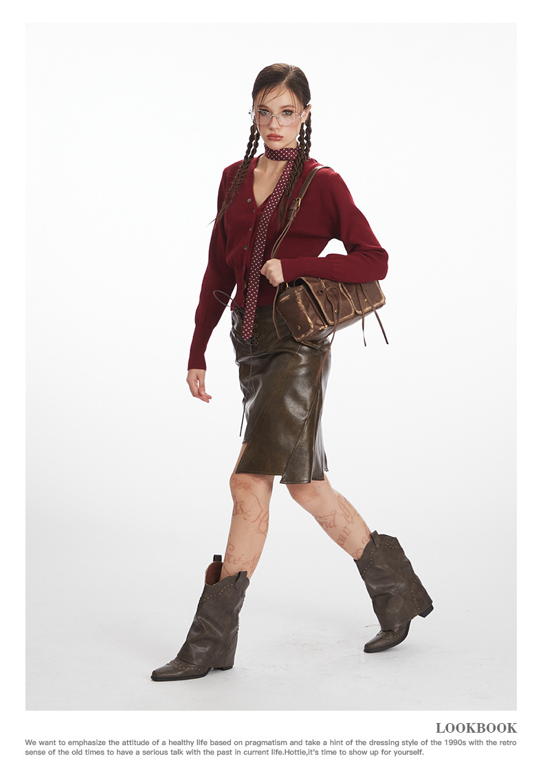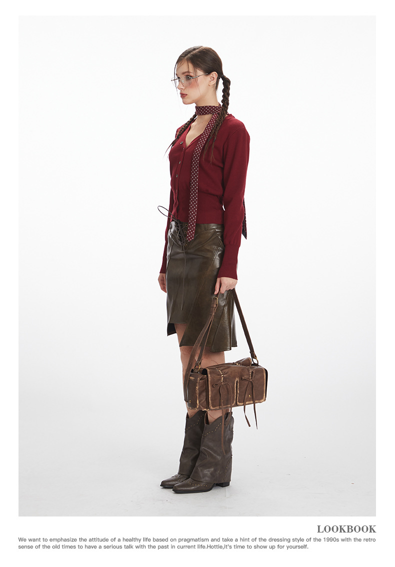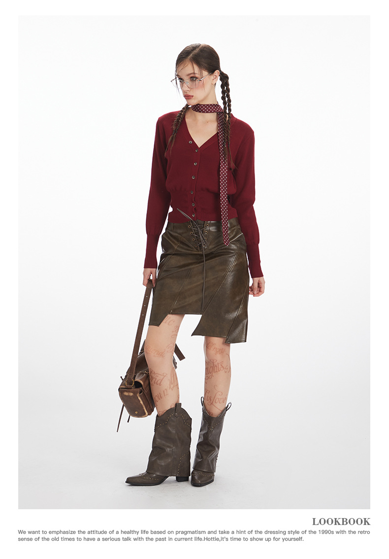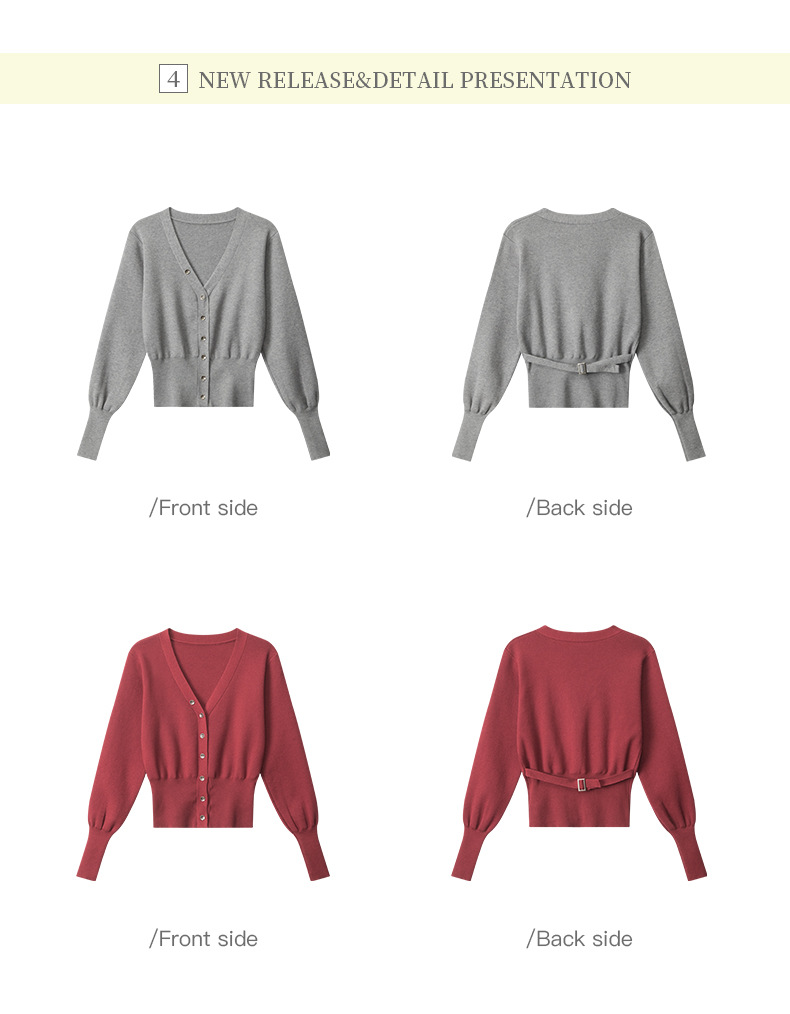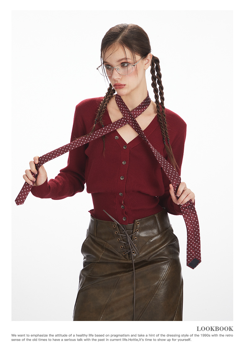 HeyHenry 레트로 가을 겨울 긴팔 브이넥 스웨터 여성 카디건 허리 슬리밍 코트 탑