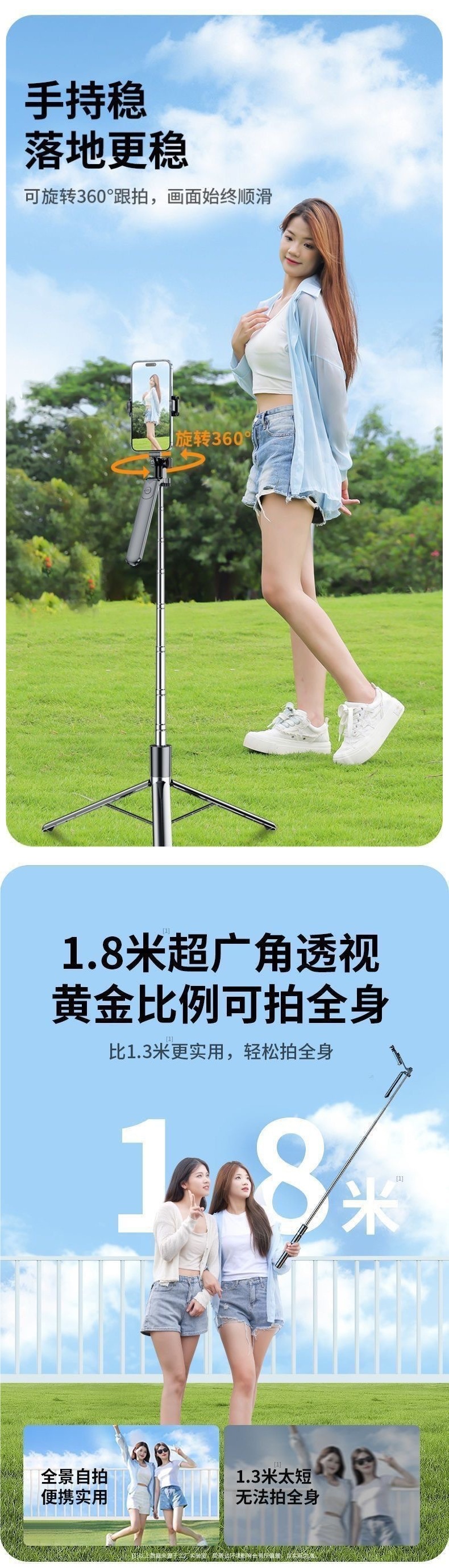 1.8m 뷰티 라이트가 장착된 휴대폰 셀카봉 블루투스 360도 회전 휴대용 바닥 삼각대 스탠드