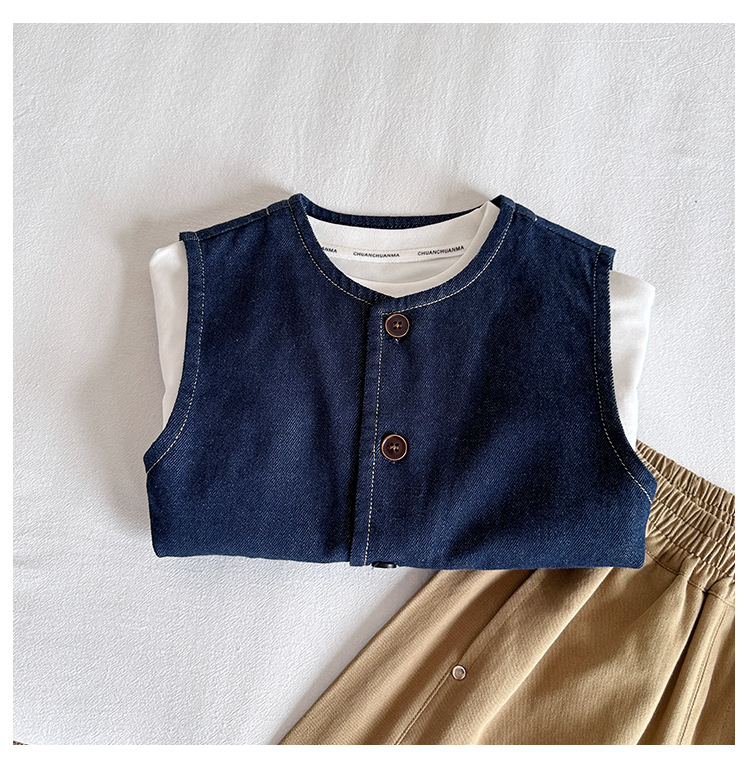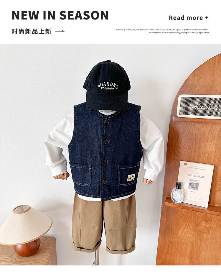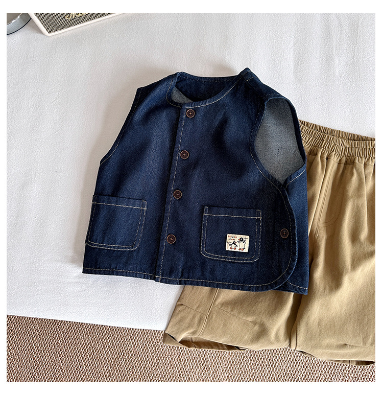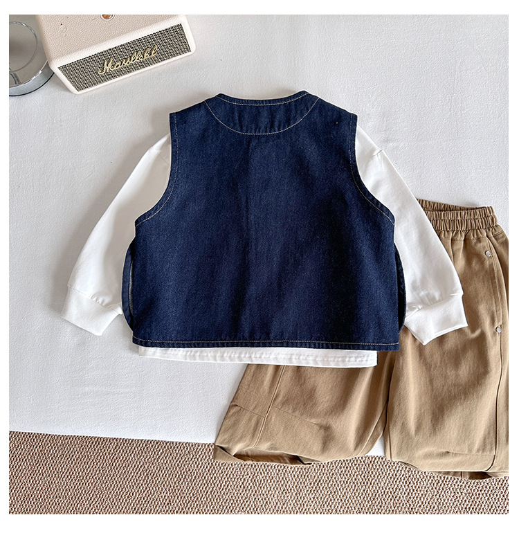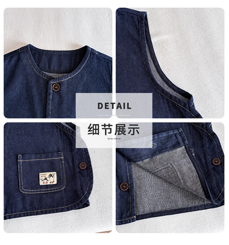 Xian'ao 2025 새로운 가을 아동복 소년과 소녀를 위한 다용도 조끼, 멋진 미국 복고풍 데님 조끼스토어 가기