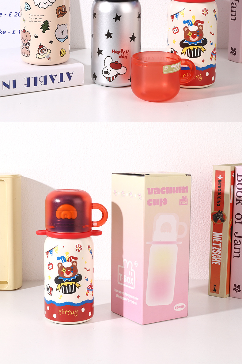 만화 반투명 3가지 음료 보온병 컵 316 스테인레스 스틸 고급스러운 학생 물컵 학교 휴대용 로프 컵스토어 가기