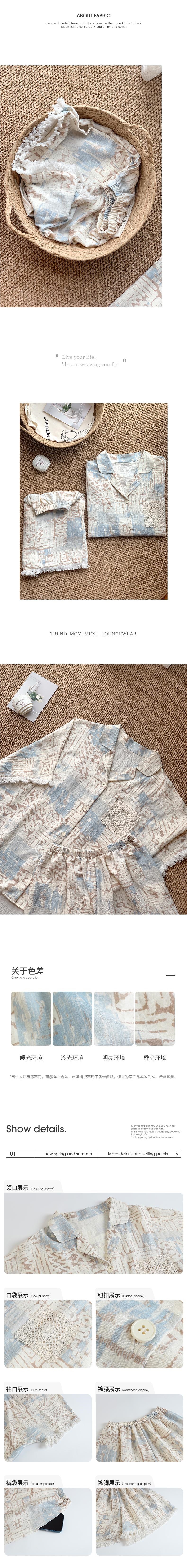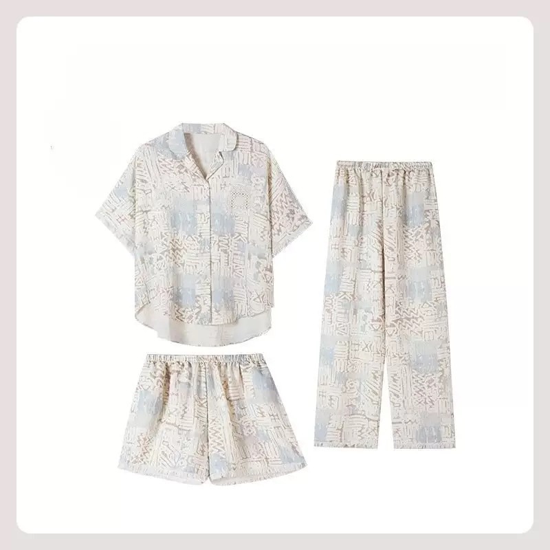 Liyin 틈새 디자이너의 새로운 버블 폼 여성 잠옷 여름 반팔 홈웨어 3피스 세트스토어 가기
