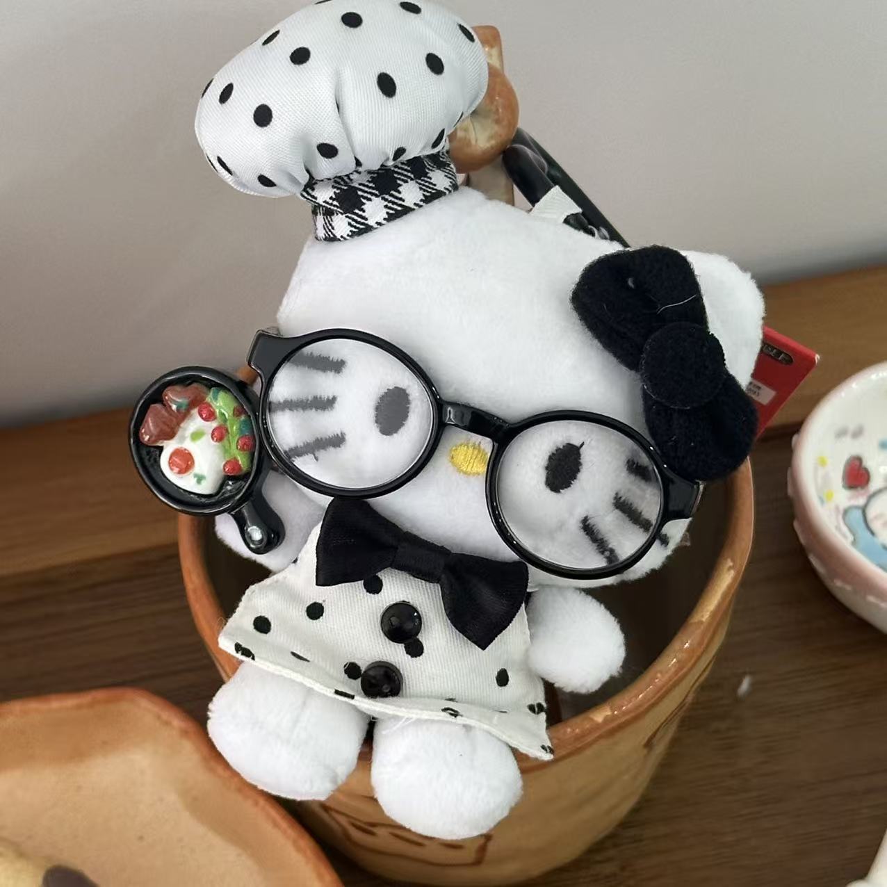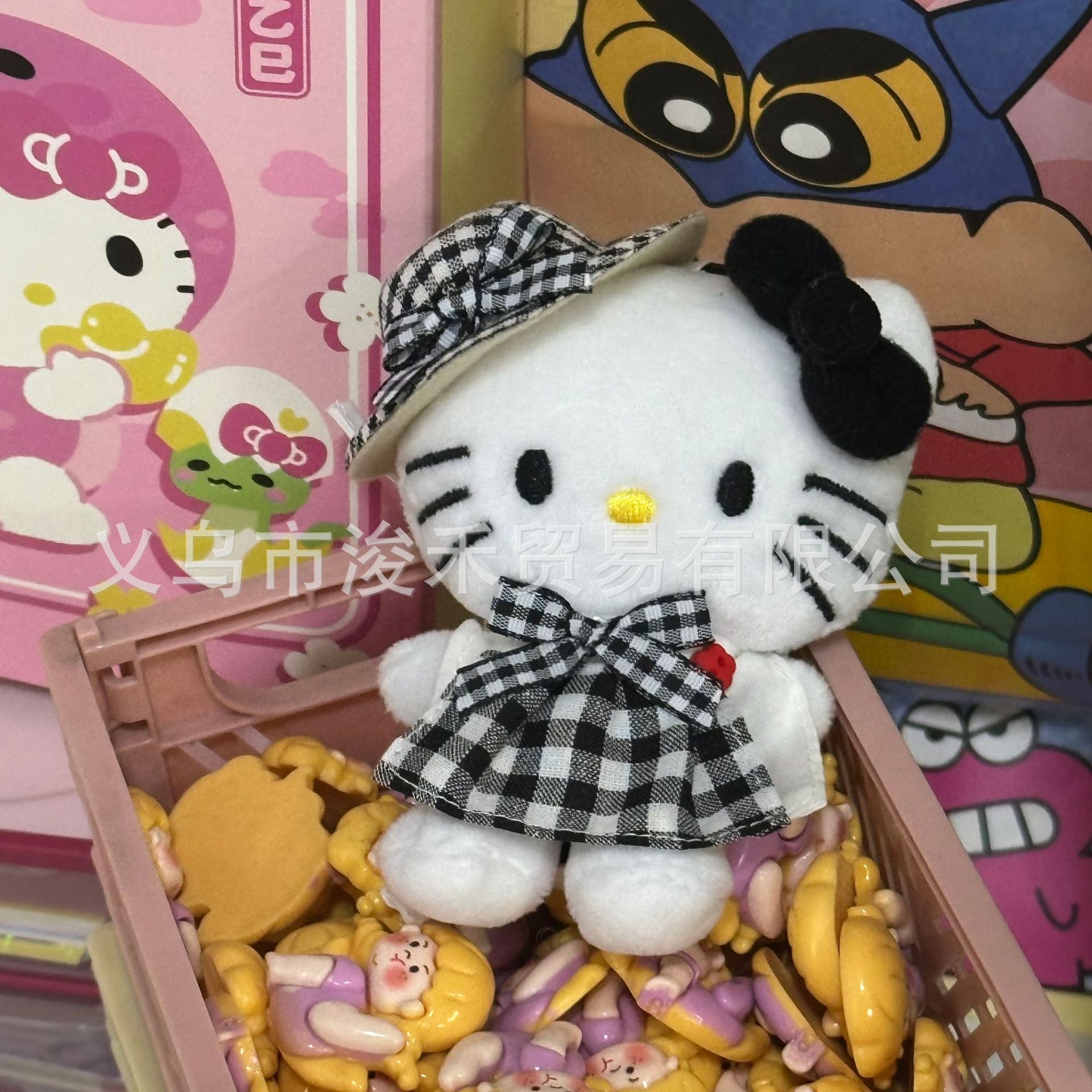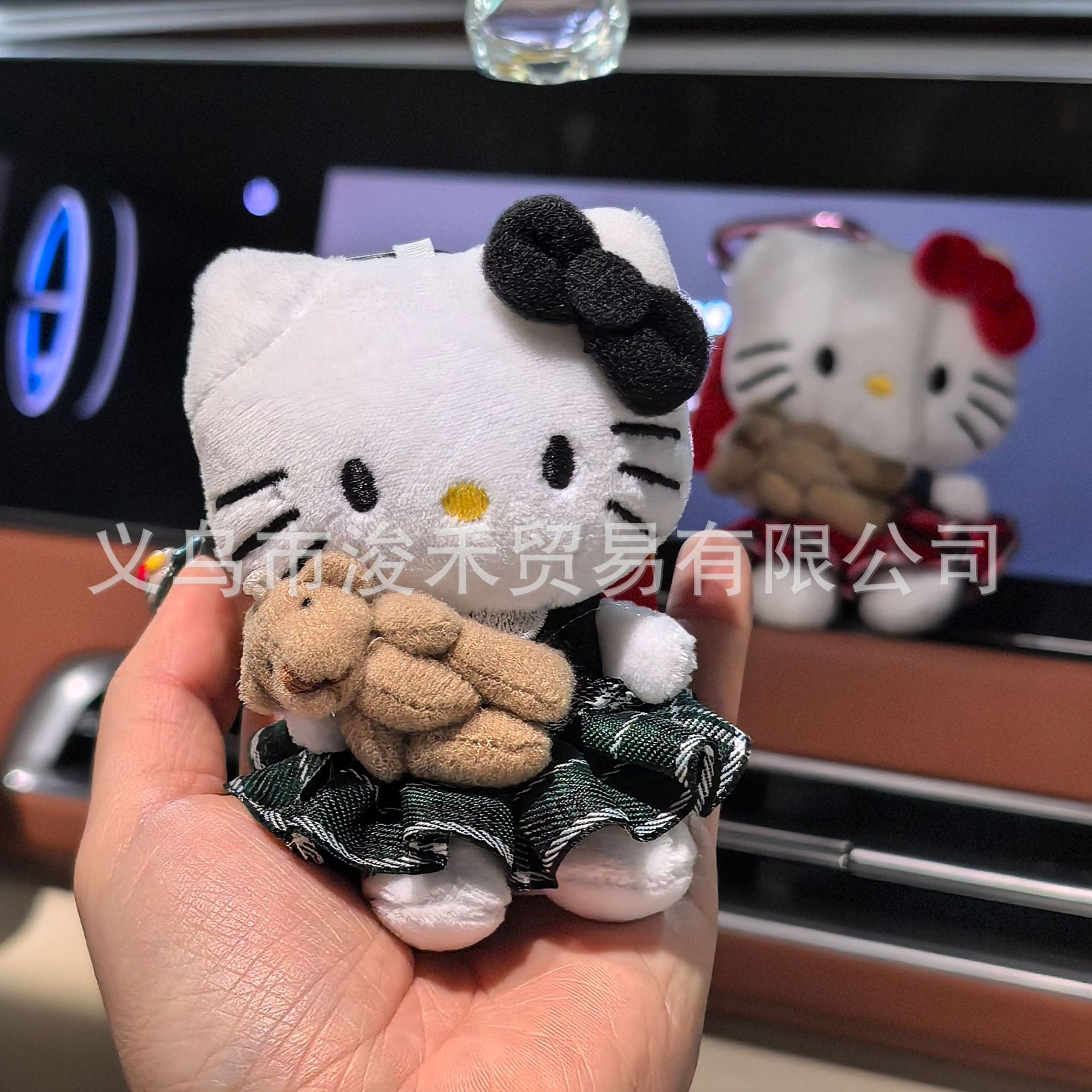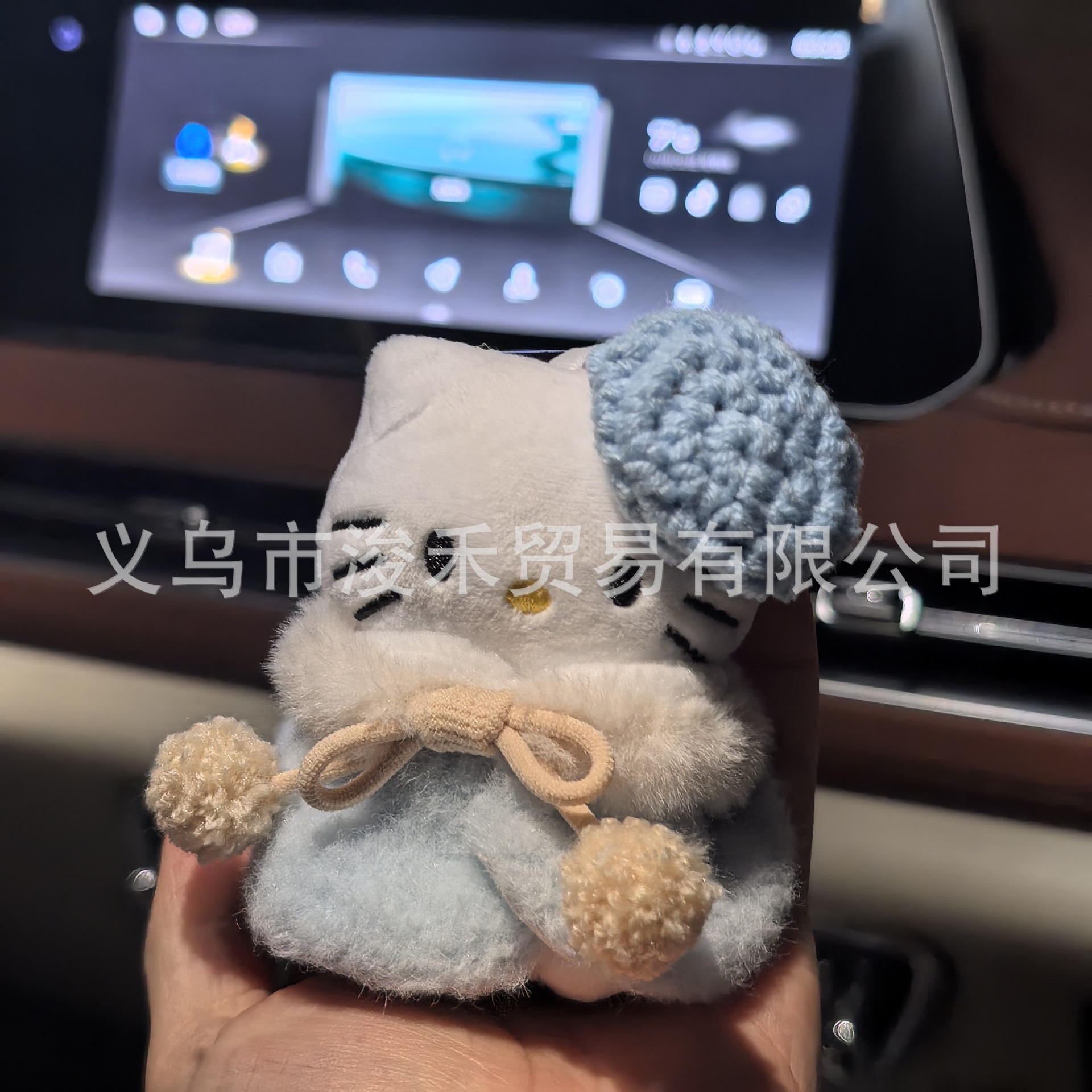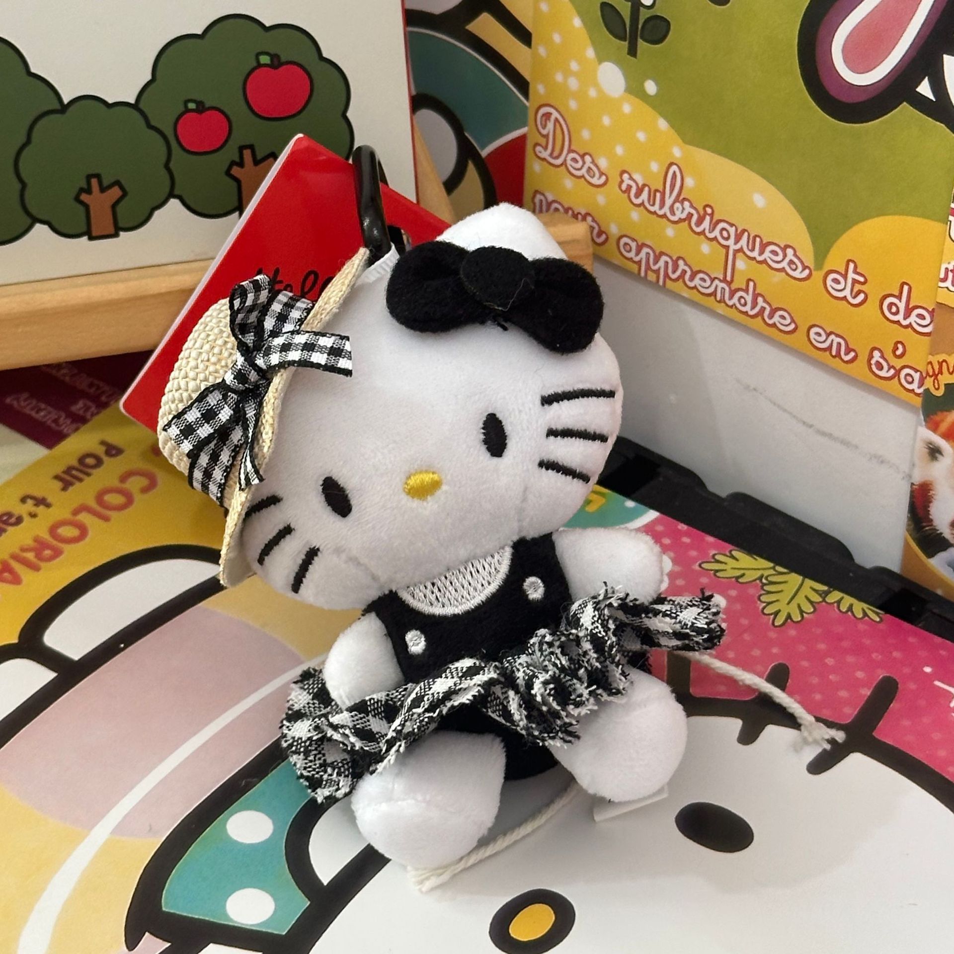 검은 밀짚 모자 키티 모자 아기 펜던트 러브 버클 인형 귀여운 햅번 스타일 펜던트 키 체인스토어 가기